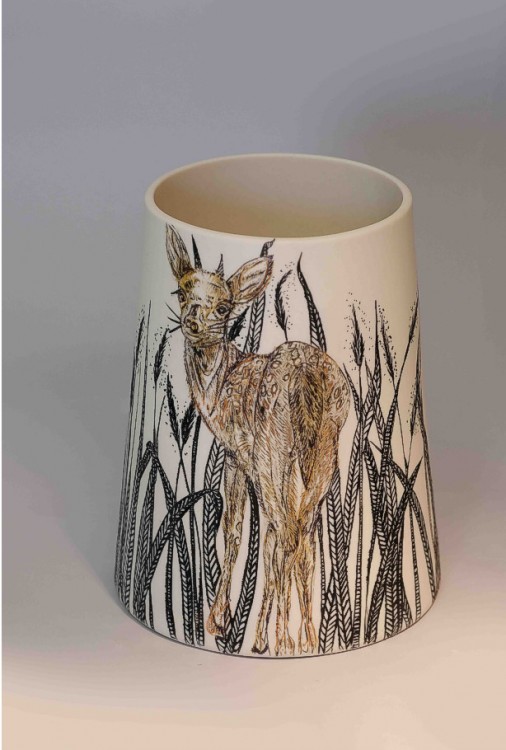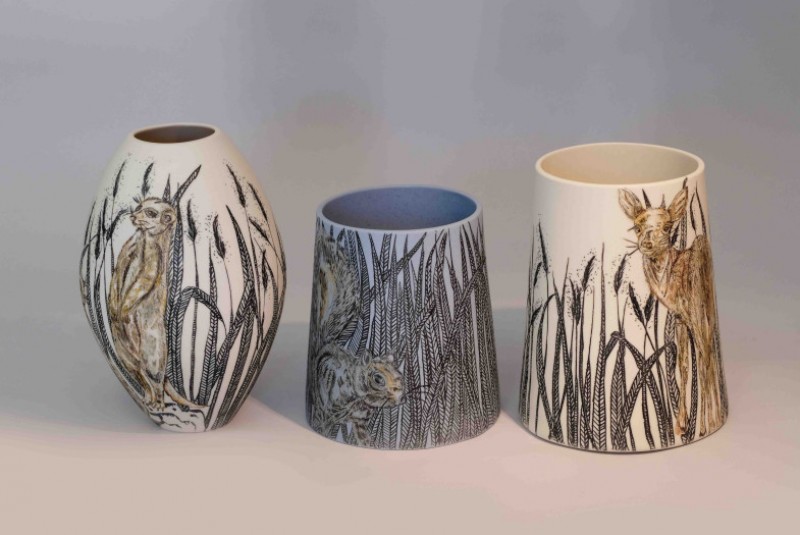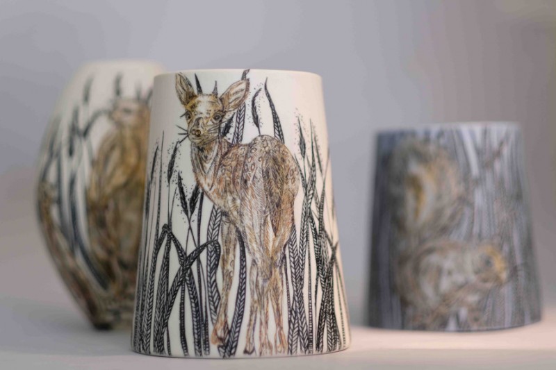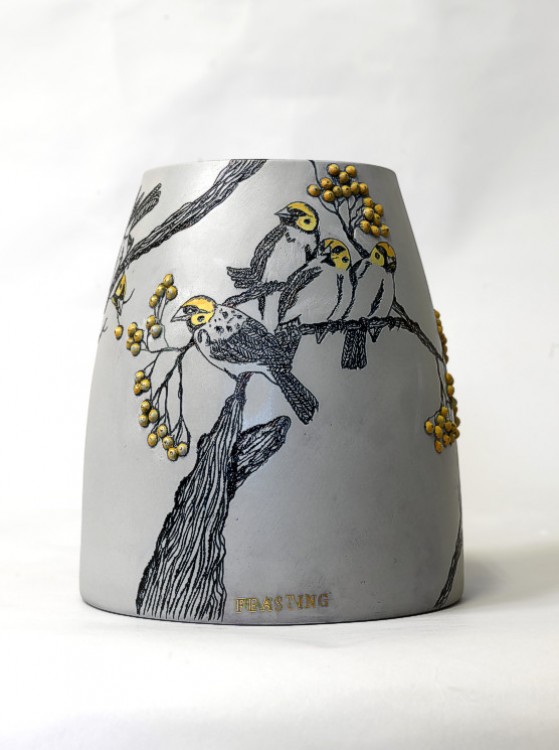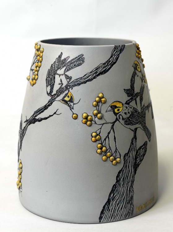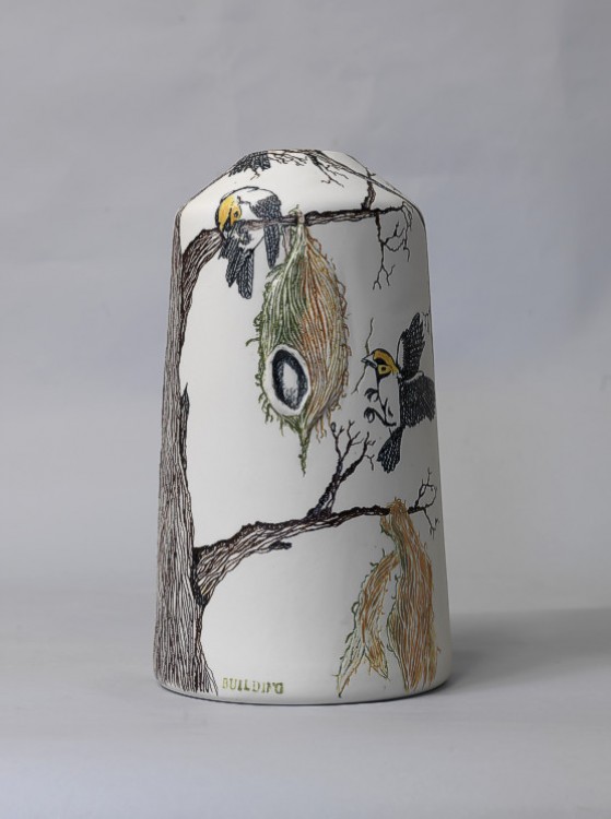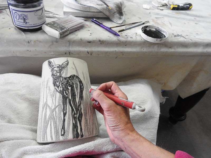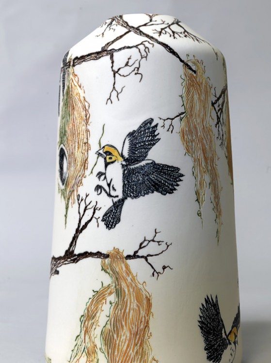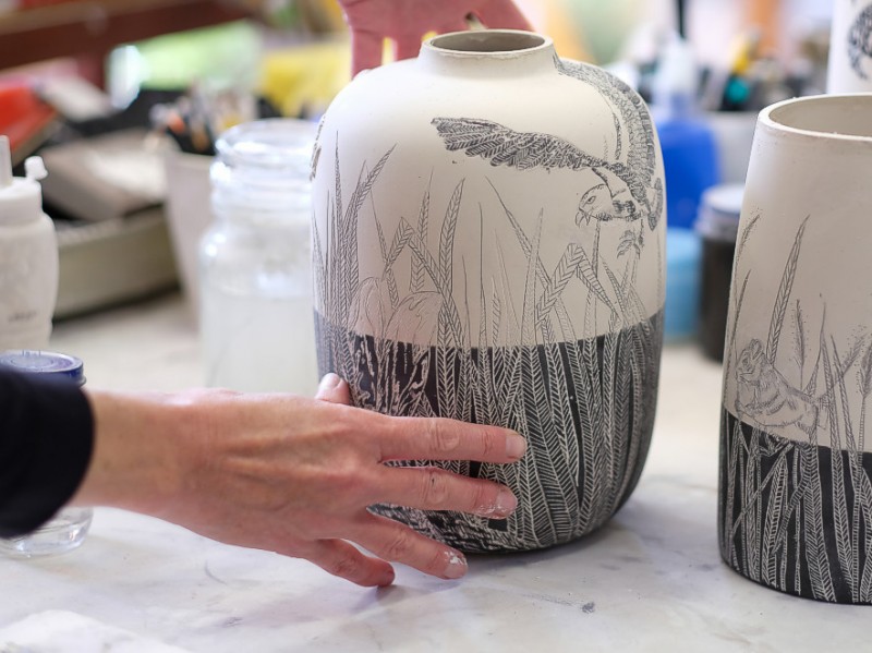 I like to illustrate through "clay etchings" on the form, a world in which small acts of everyday life reveals itself in fine detail.
