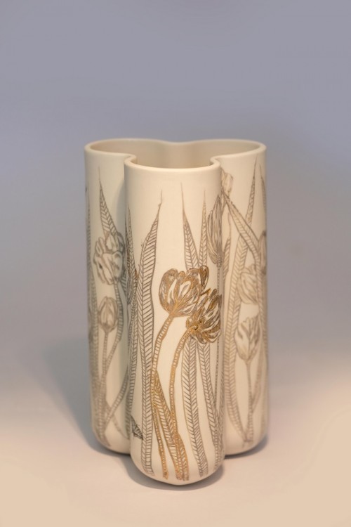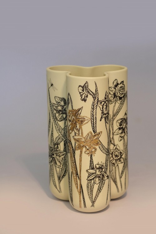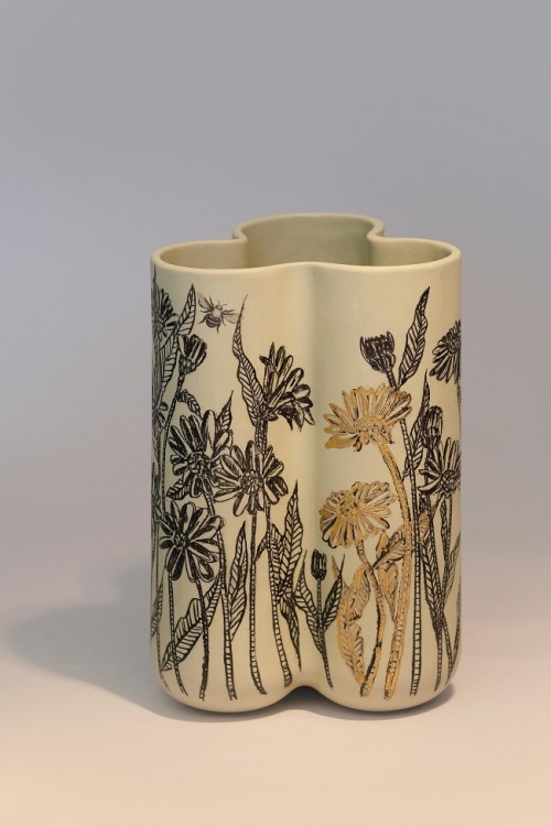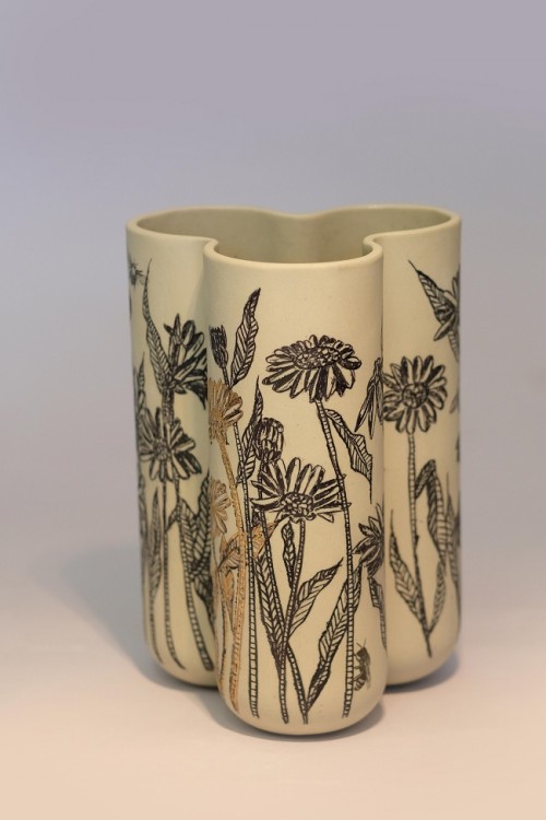 I like to illustrate through "clay etchings" on the form, a world in which small acts of everyday life reveals itself in fine detail.