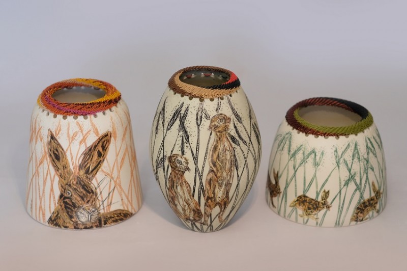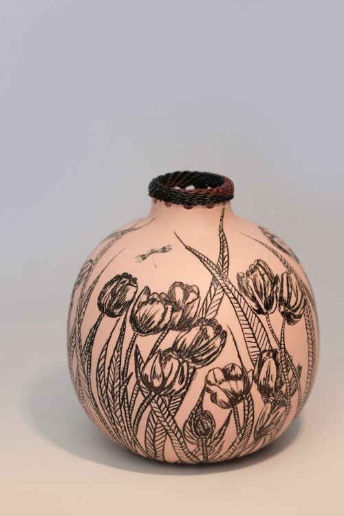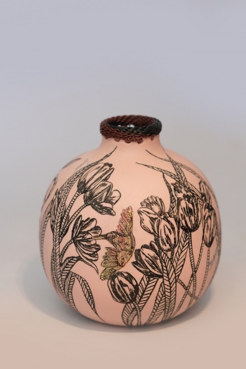 I like to illustrate through "clay etchings" on the form, a world in which small acts of everyday life reveals itself in fine detail.