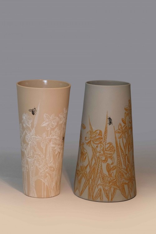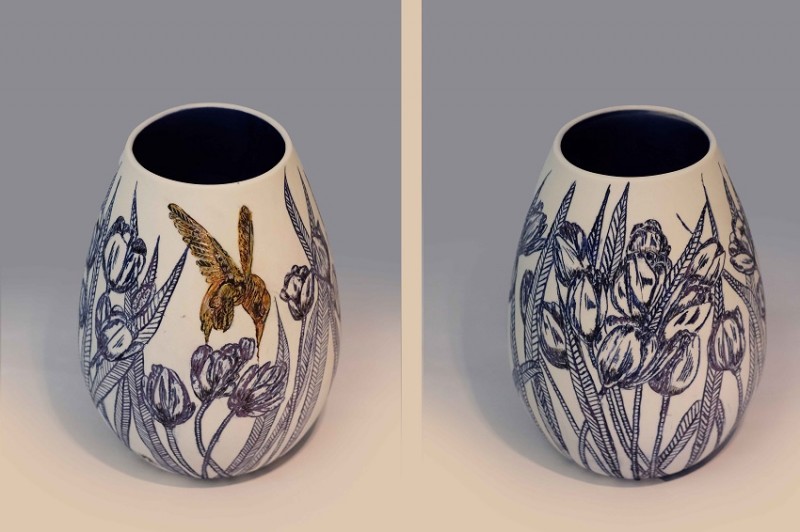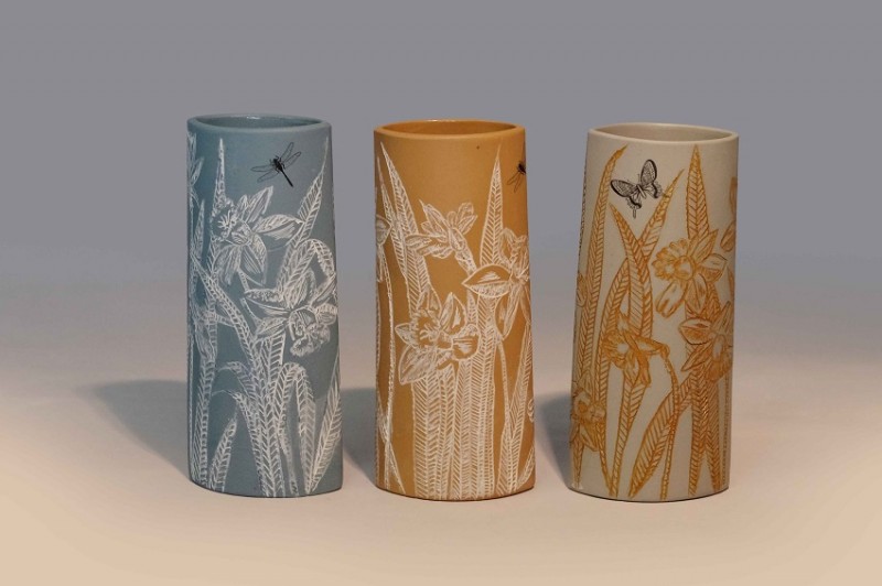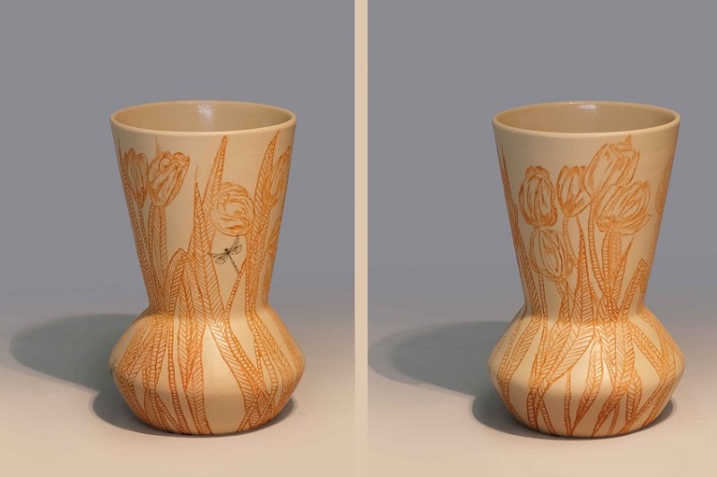 I like to illustrate through "clay etchings" on the form, a world in which small acts of everyday life reveals itself in fine detail.