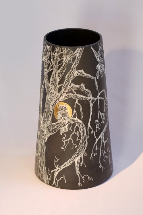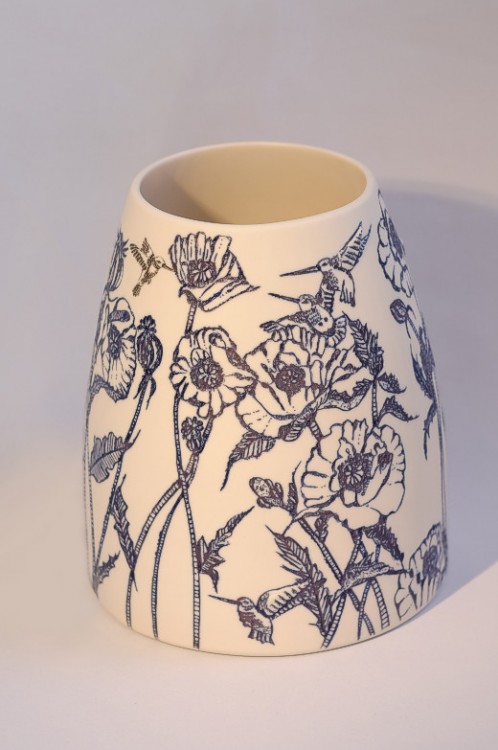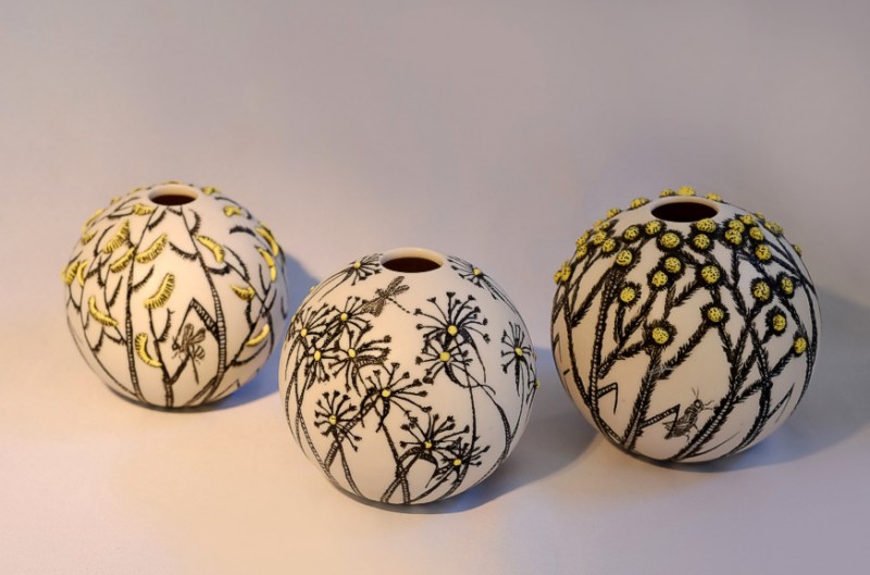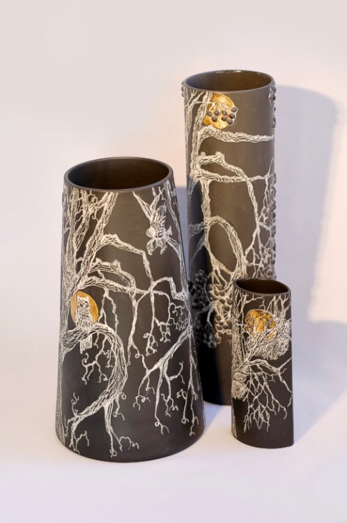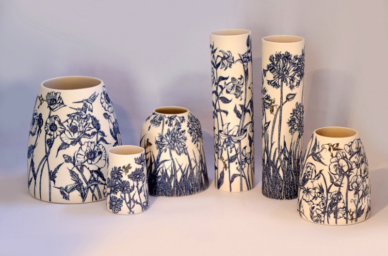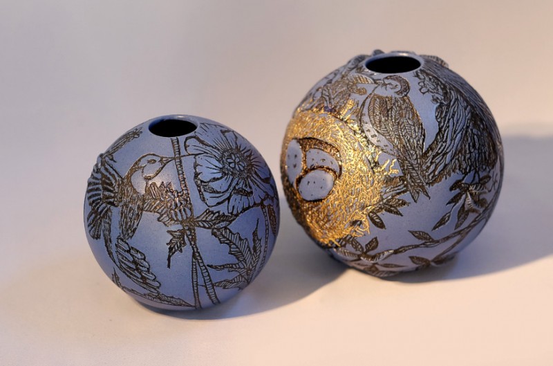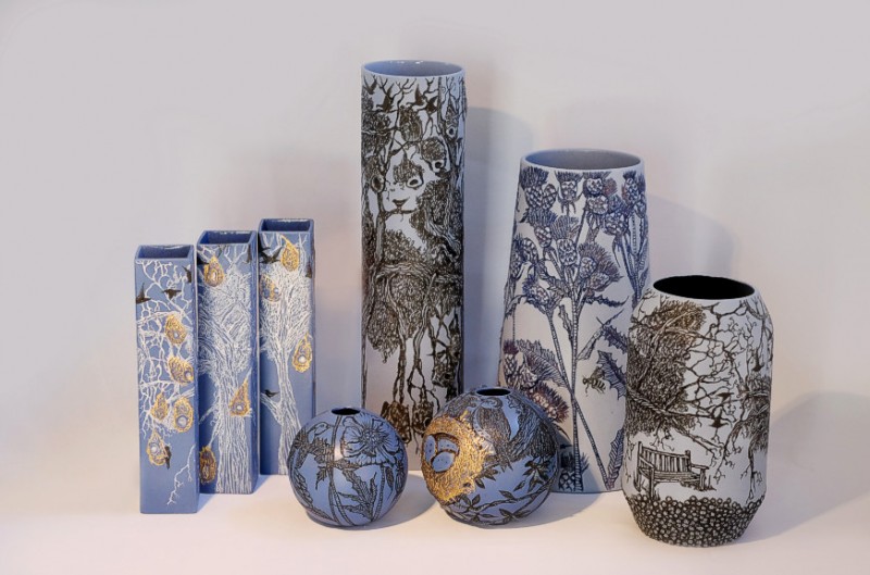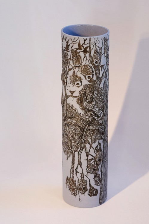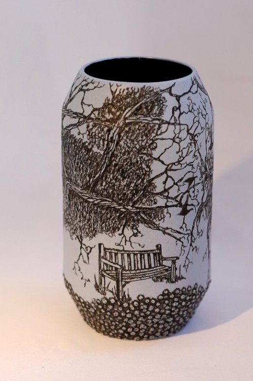 I like to illustrate through "clay etchings" on the form, a world in which small acts of everyday life reveals itself in fine detail.