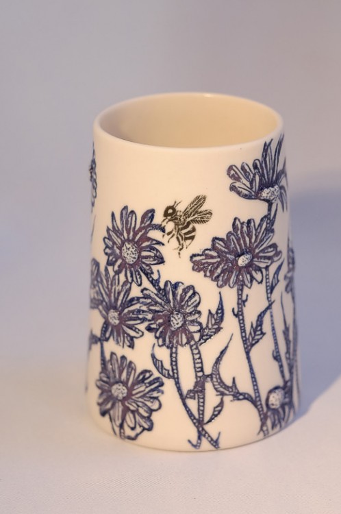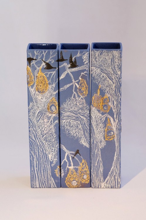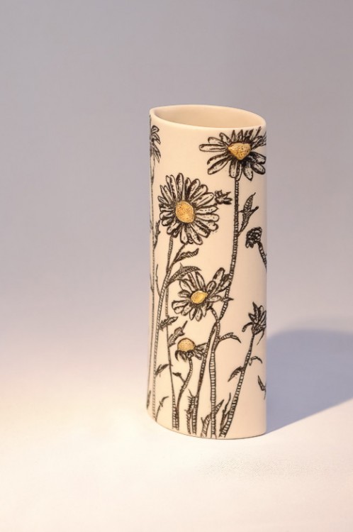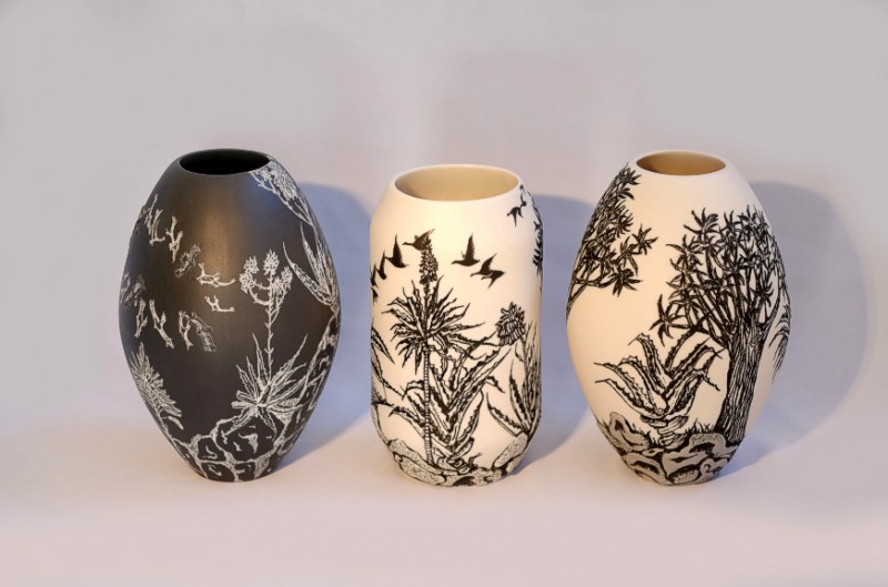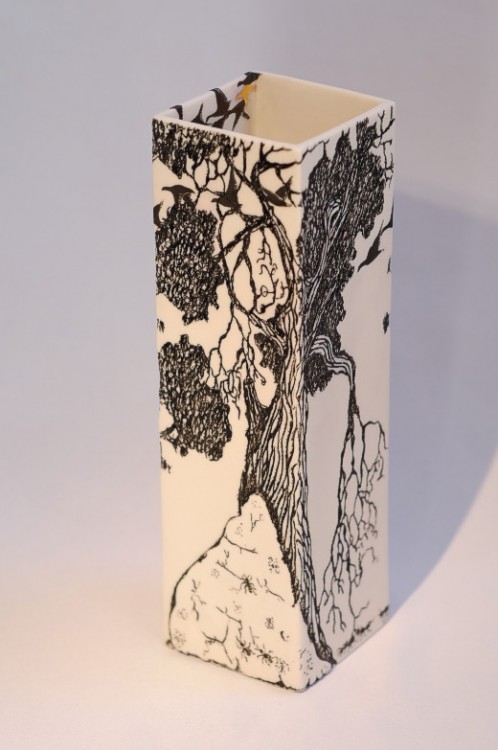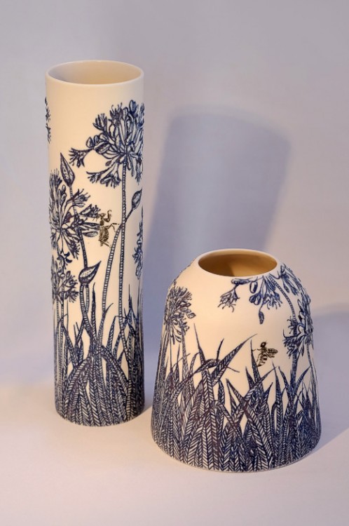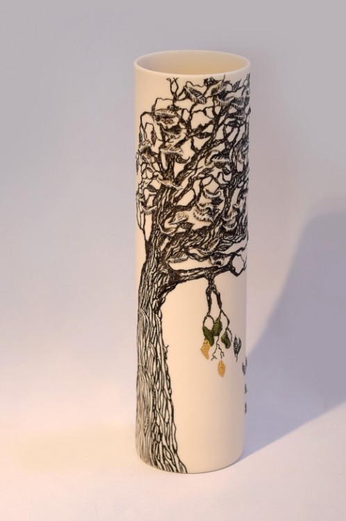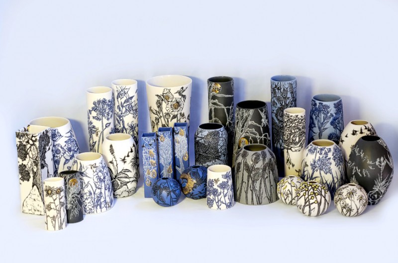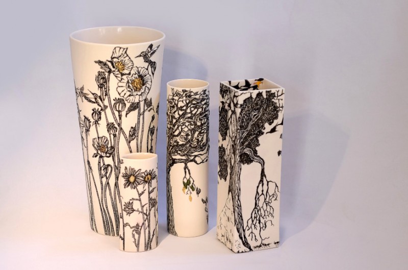 I like to illustrate through "clay etchings" on the form, a world in which small acts of everyday life reveals itself in fine detail.