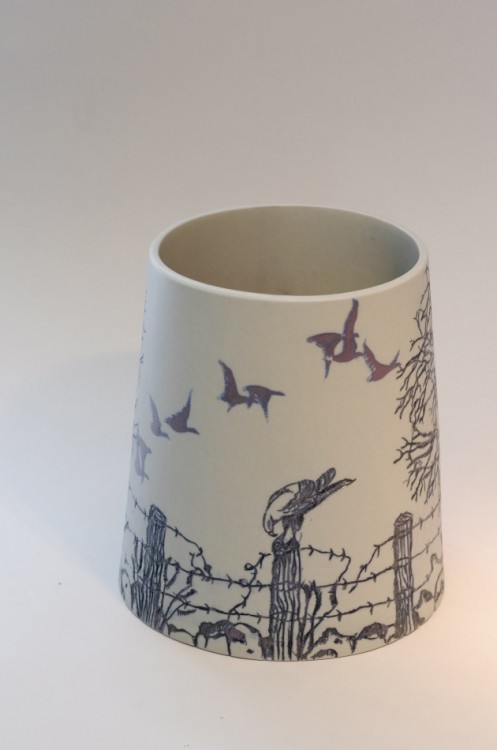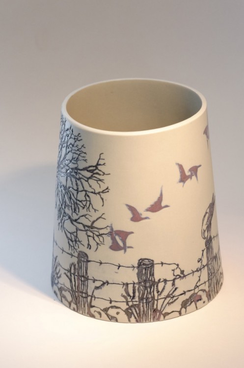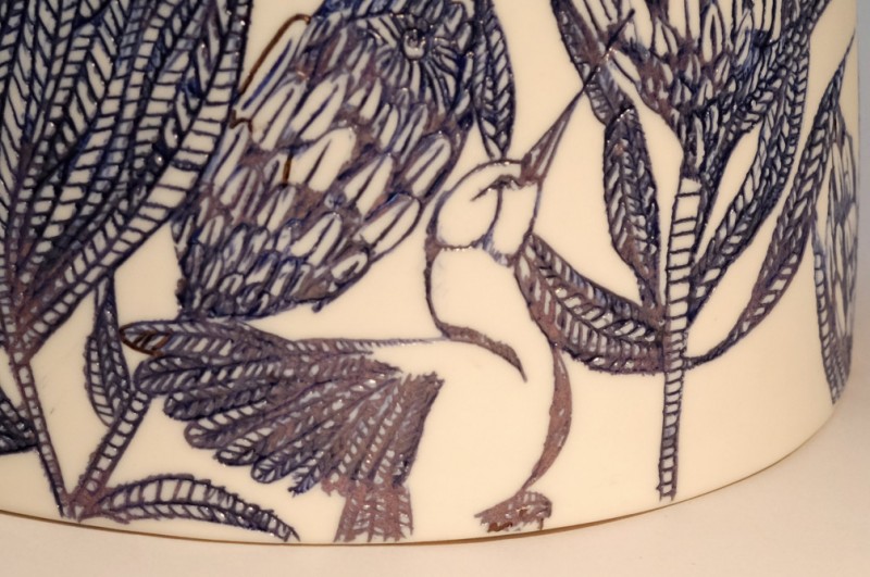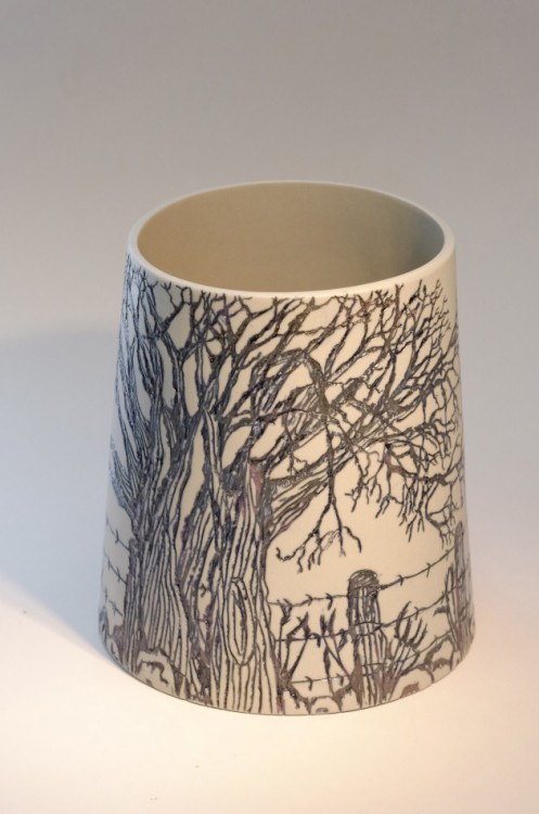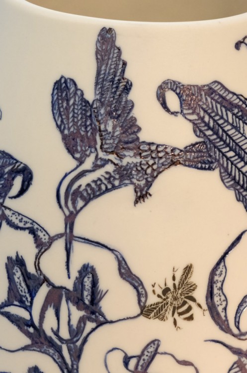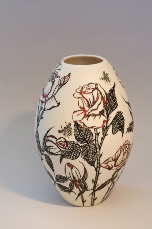 I like to illustrate through "clay etchings" on the form, a world in which small acts of everyday life reveals itself in fine detail.