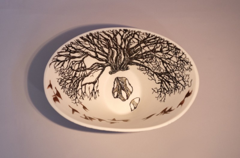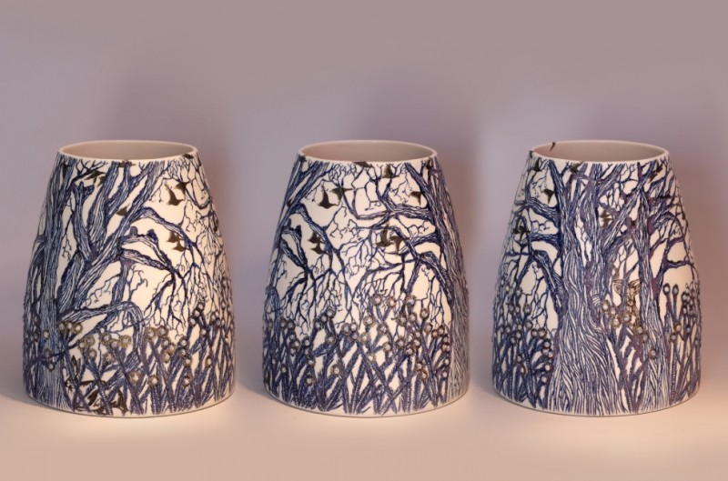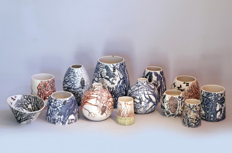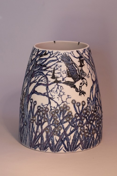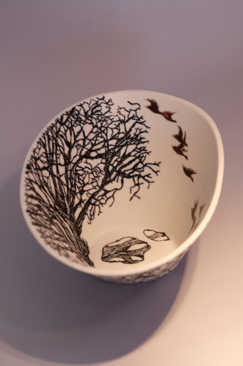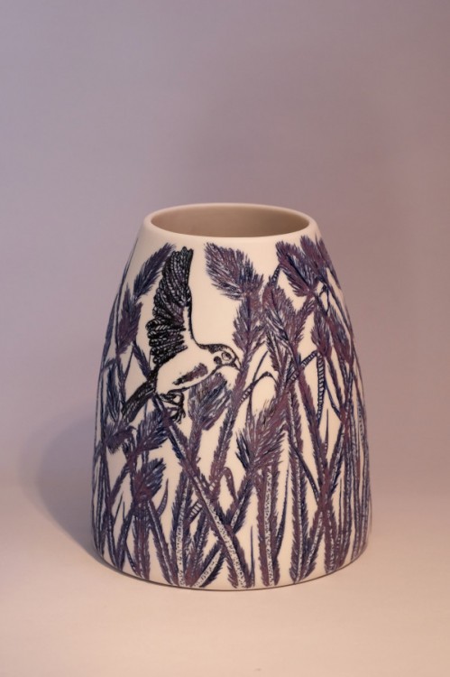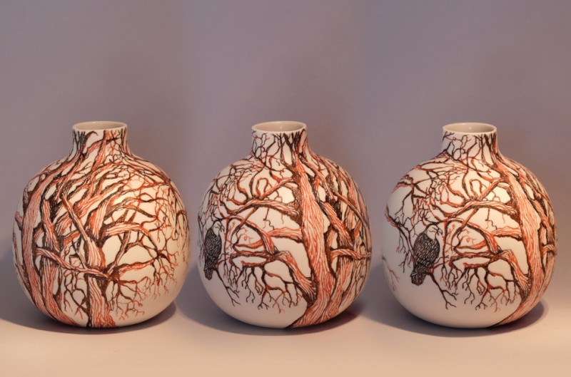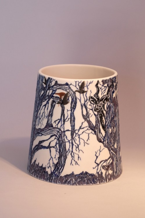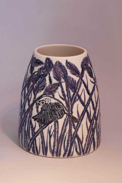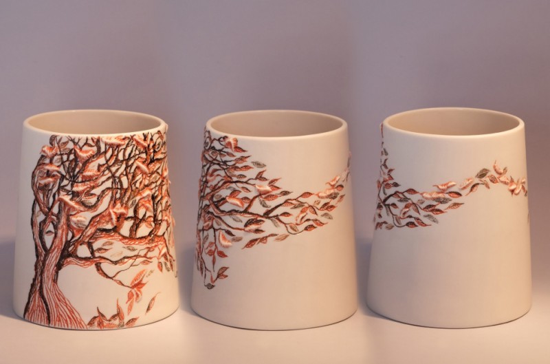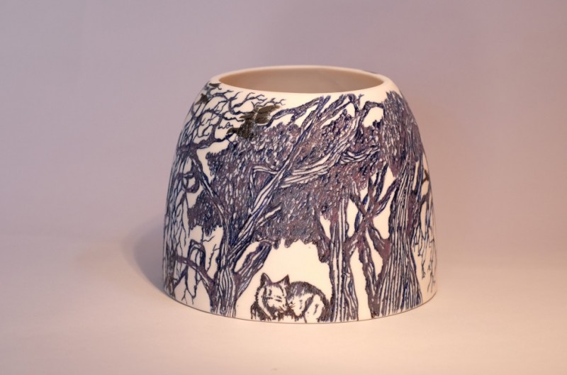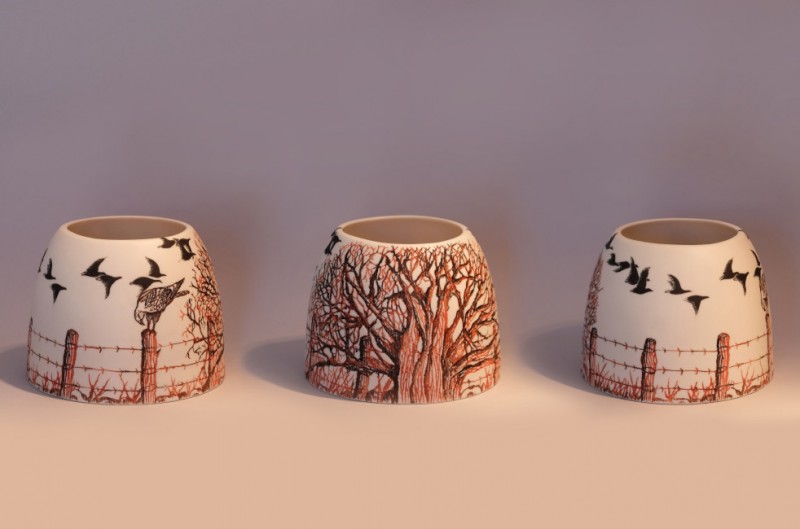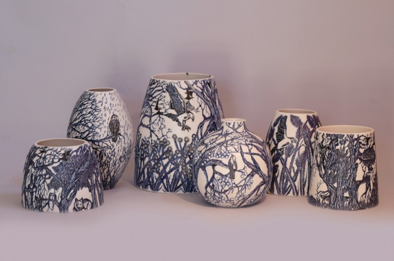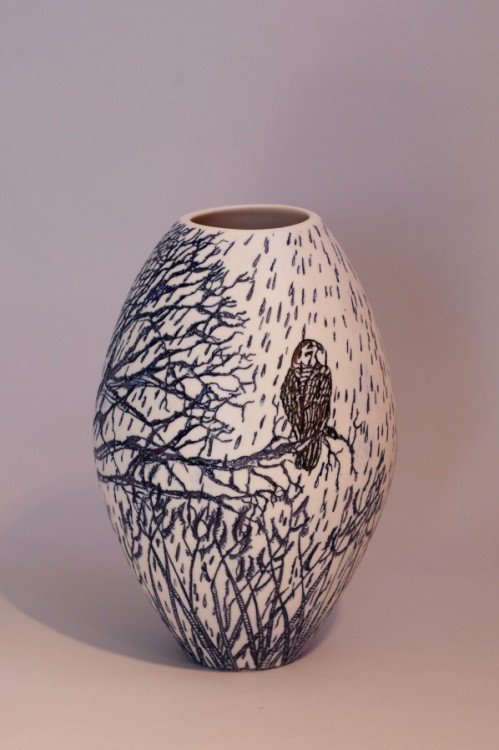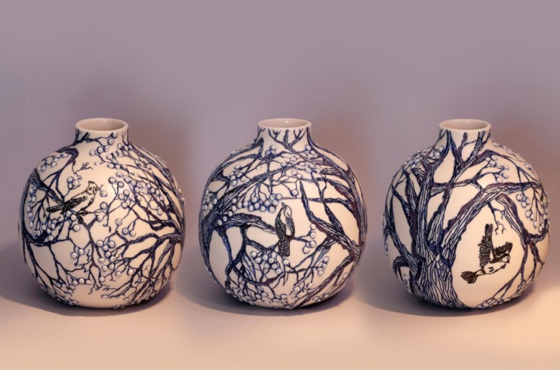 I like to illustrate through "clay etchings" on the form, a world in which small acts of everyday life reveals itself in fine detail.