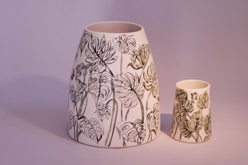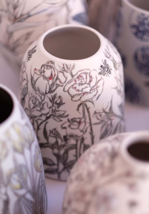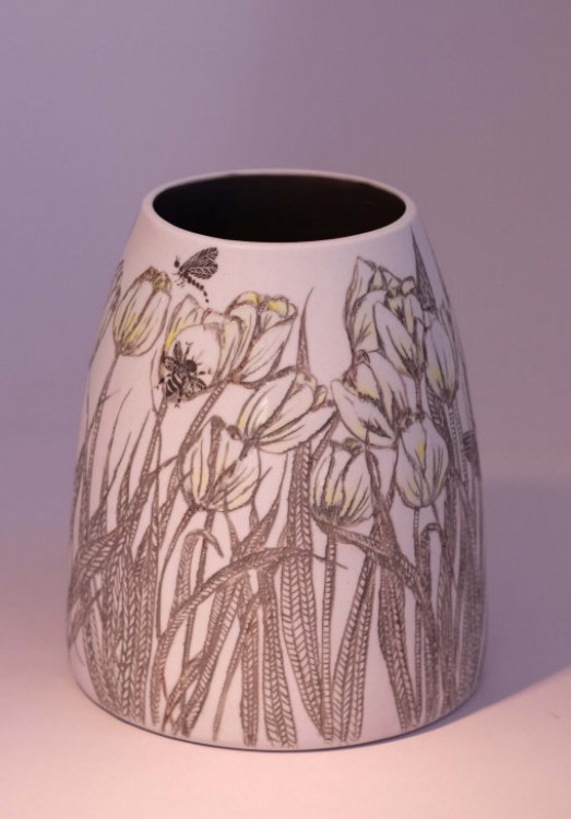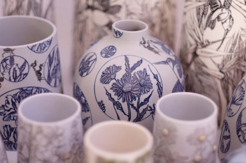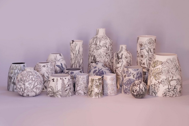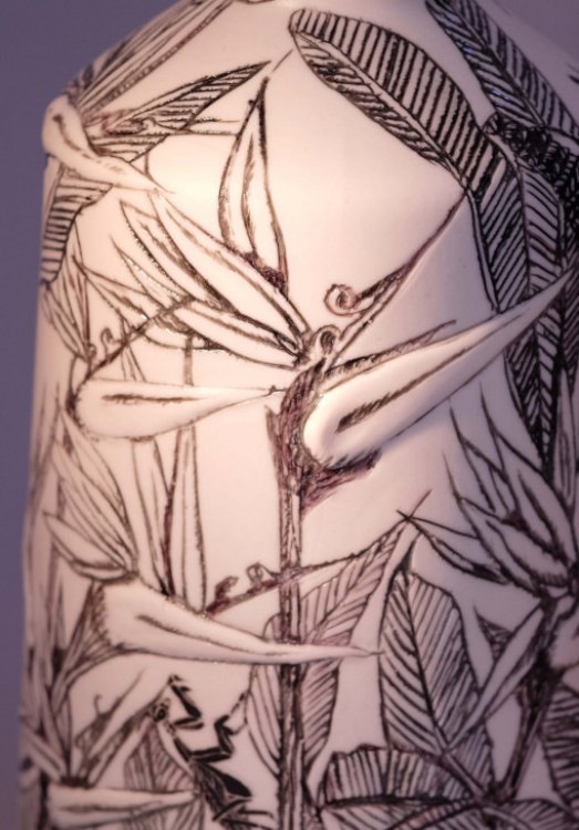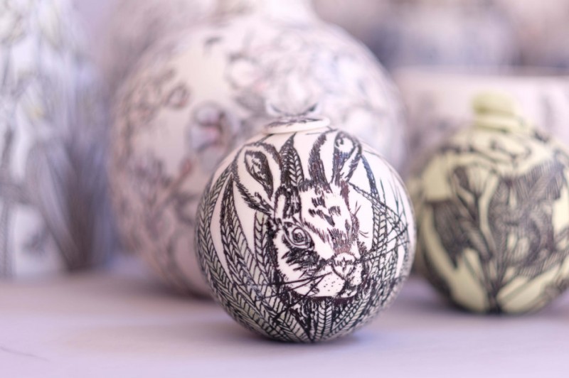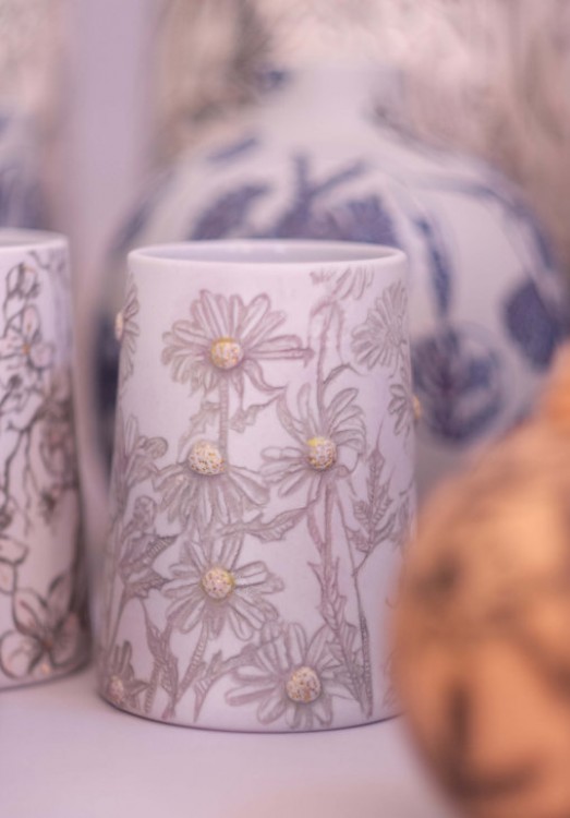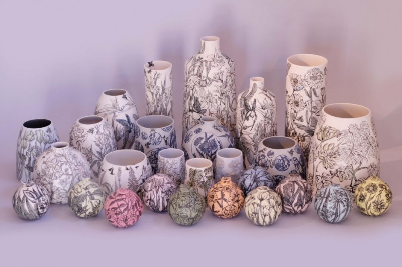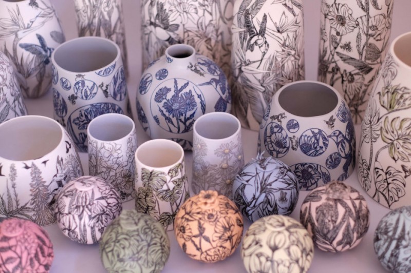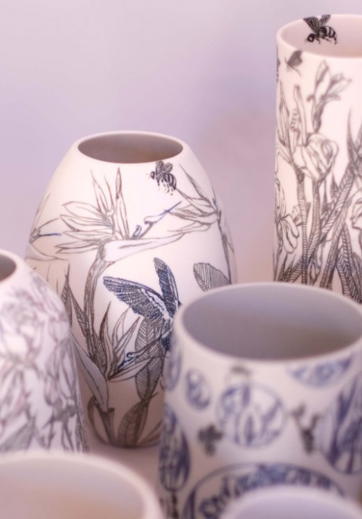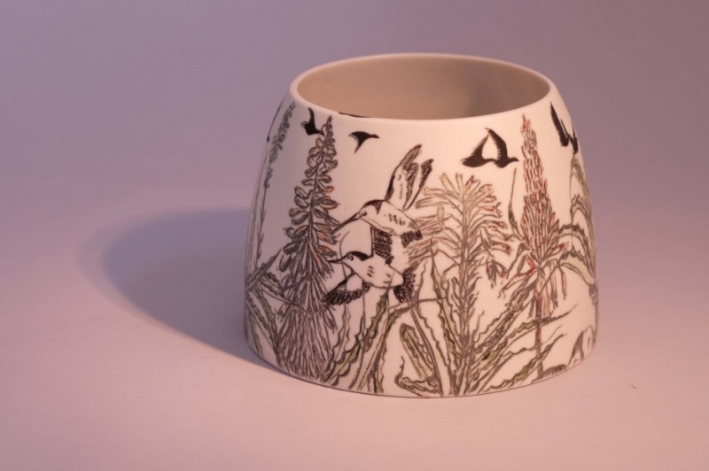 I like to illustrate through "clay etchings" on the form, a world in which small acts of everyday life reveals itself in fine detail.