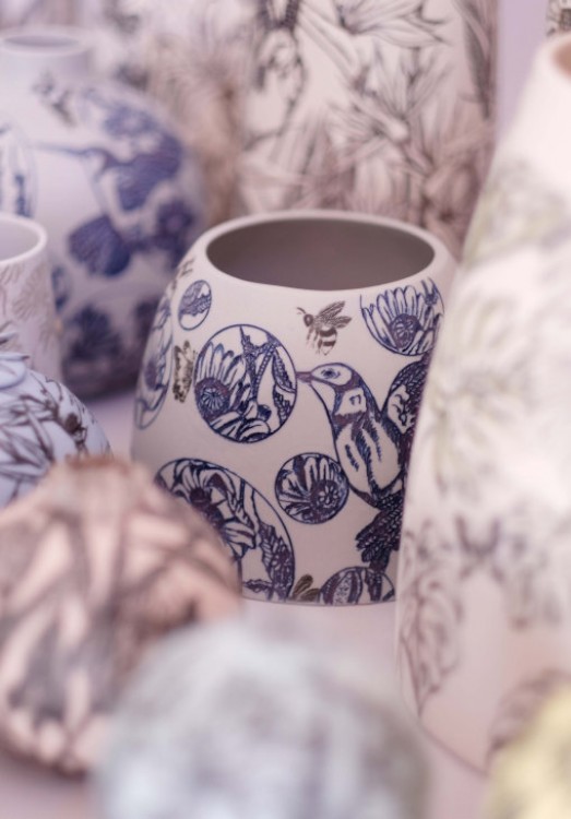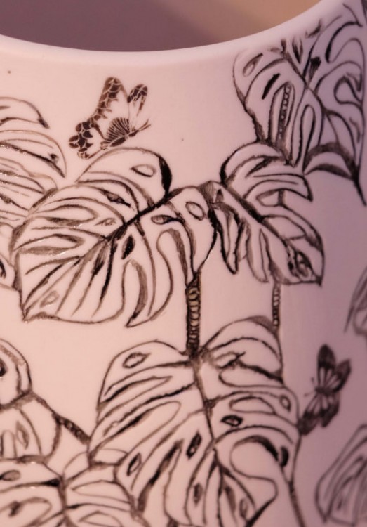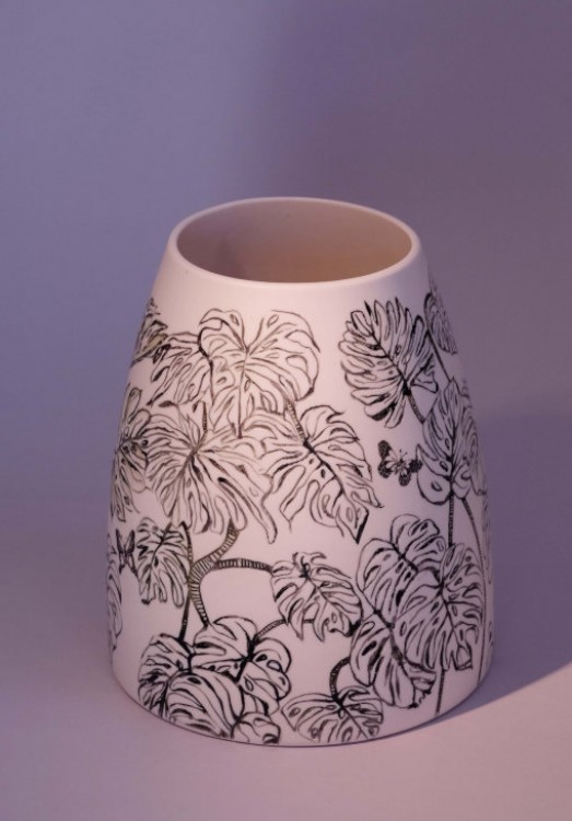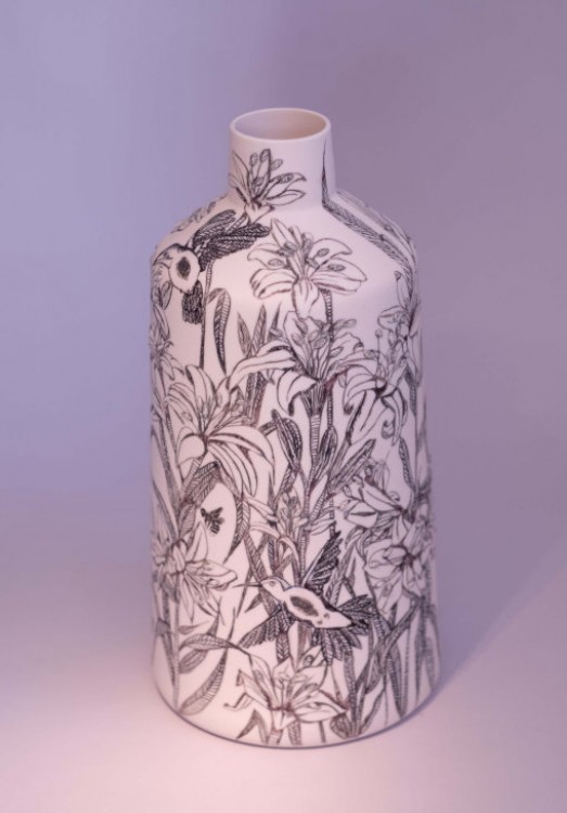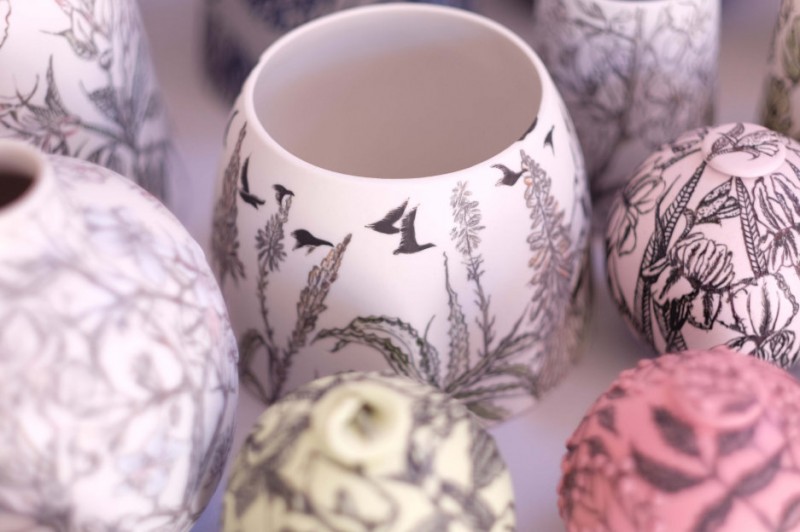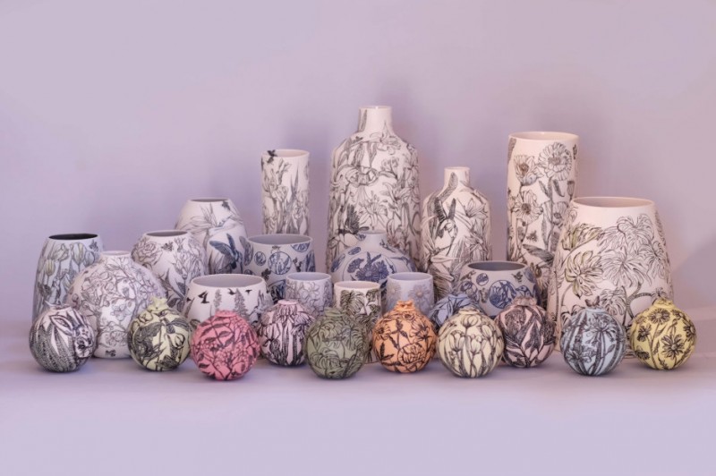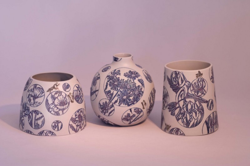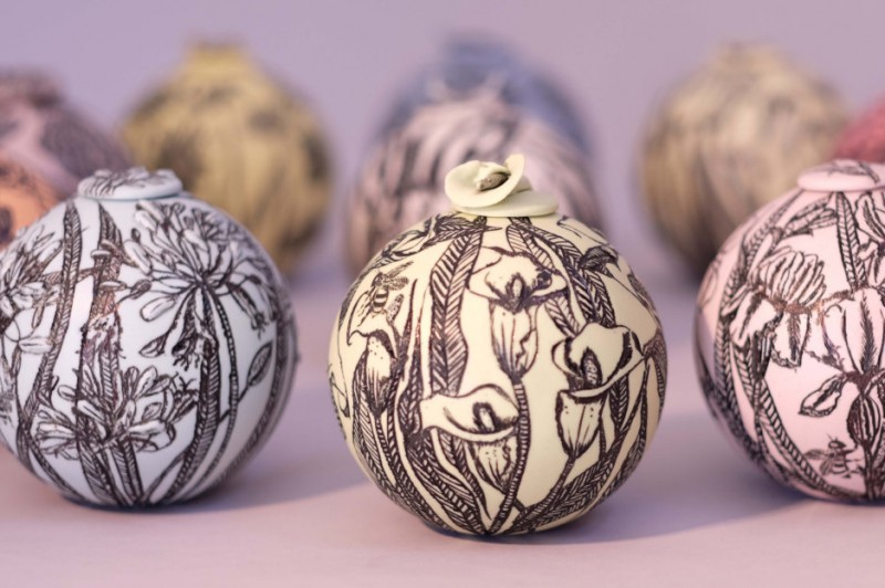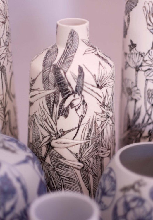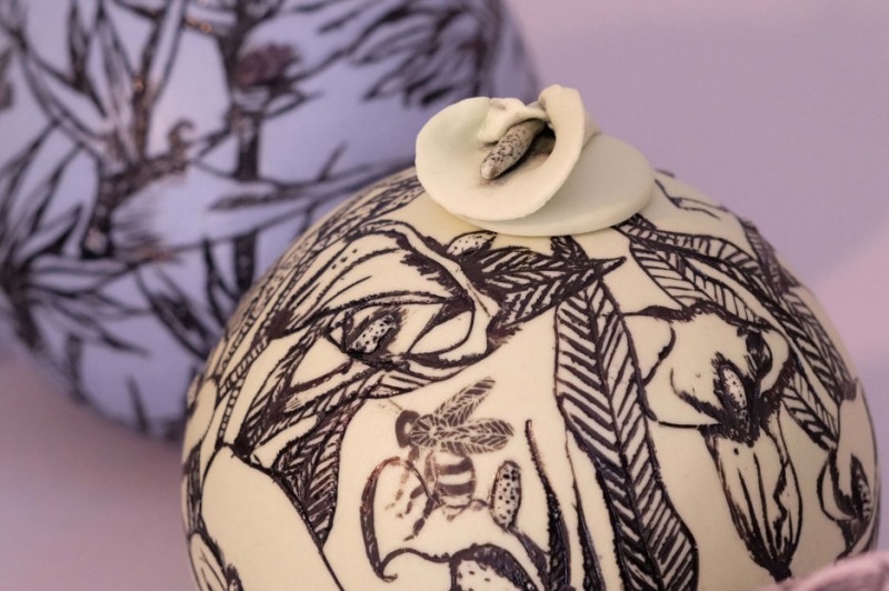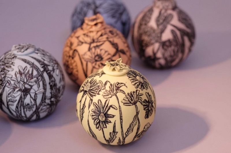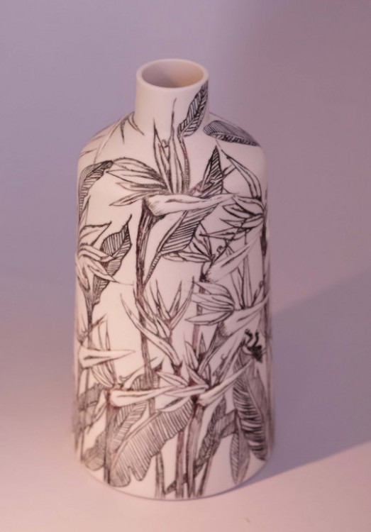 I like to illustrate through "clay etchings" on the form, a world in which small acts of everyday life reveals itself in fine detail.