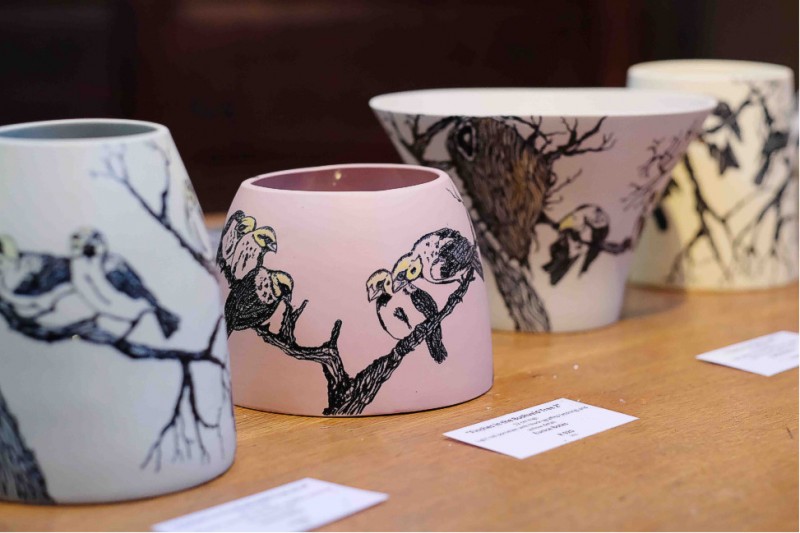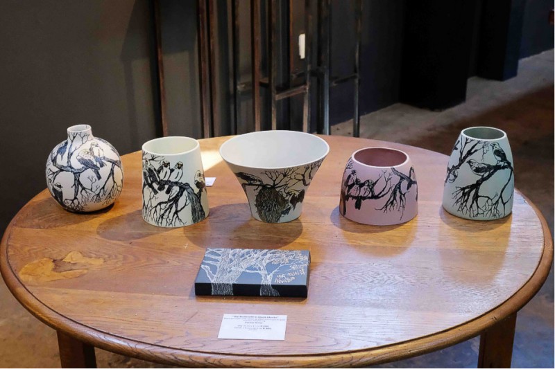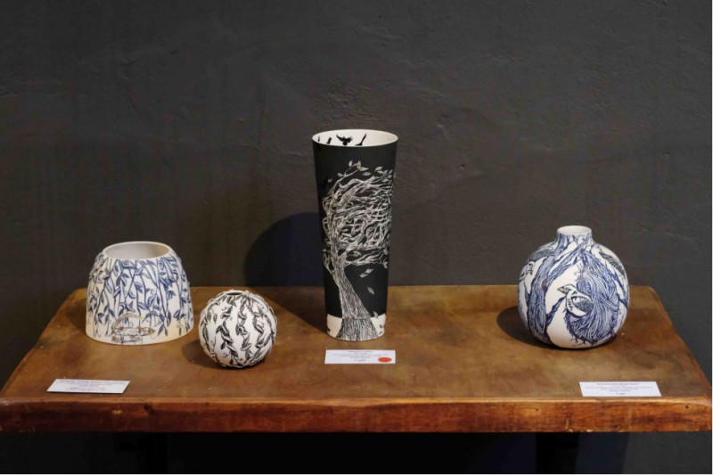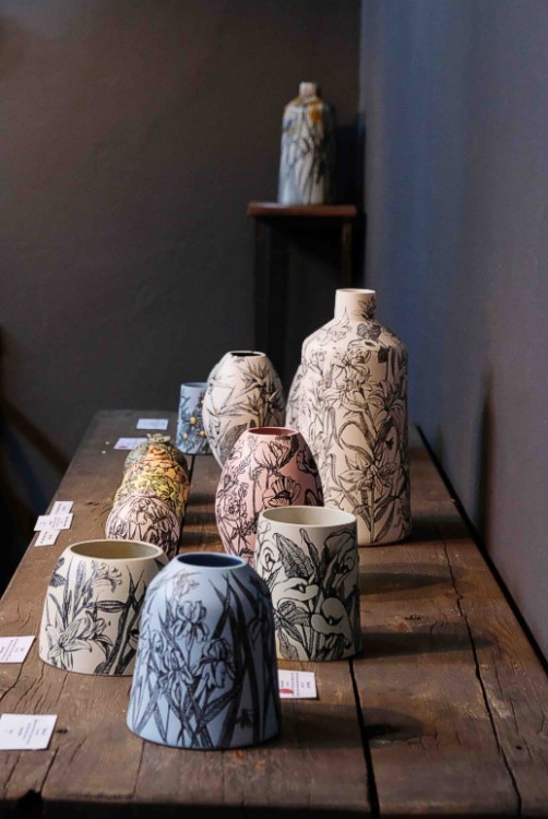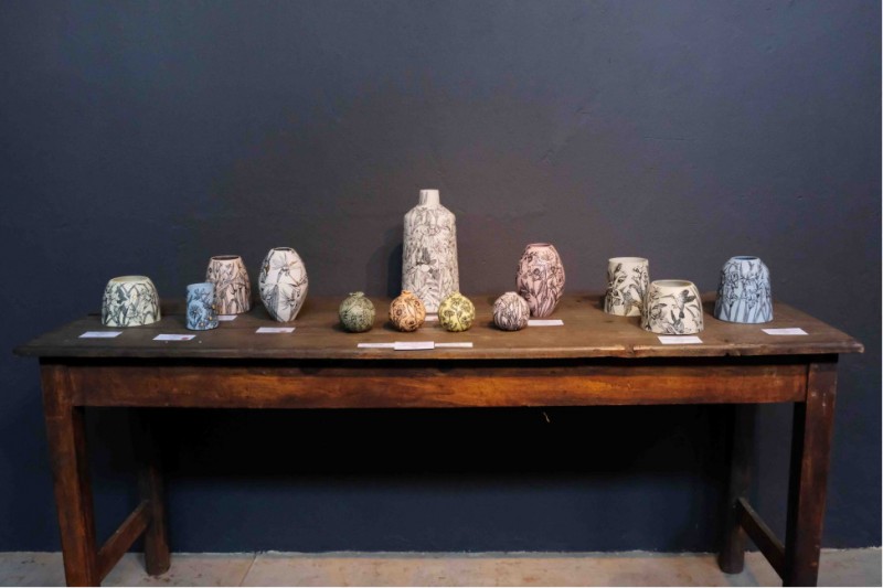 I like to illustrate through "clay etchings" on the form, a world in which small acts of everyday life reveals itself in fine detail.