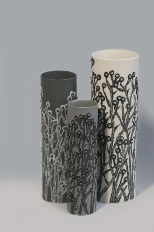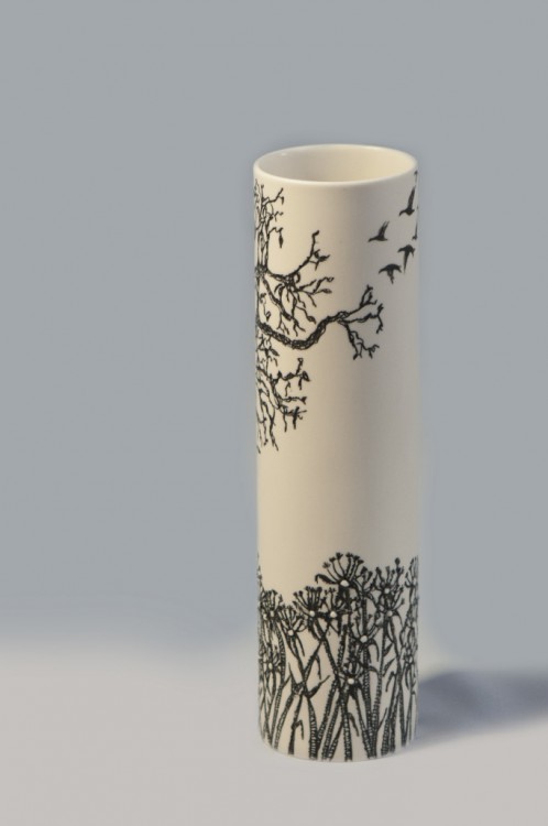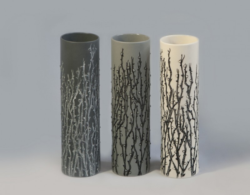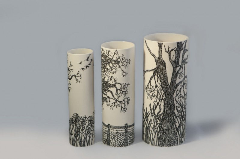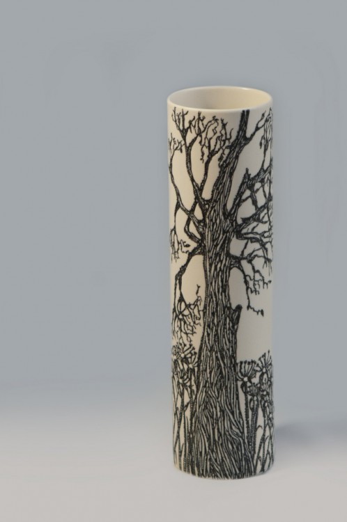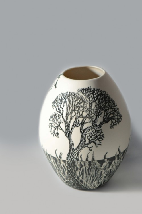 I like to illustrate through "clay etchings" on the form, a world in which small acts of everyday life reveals itself in fine detail.