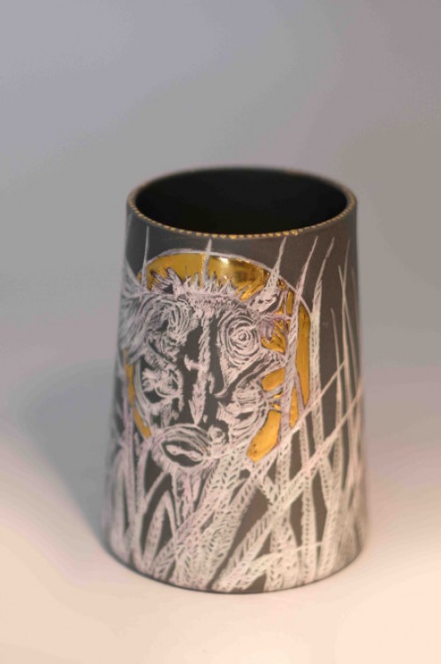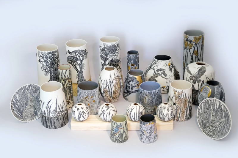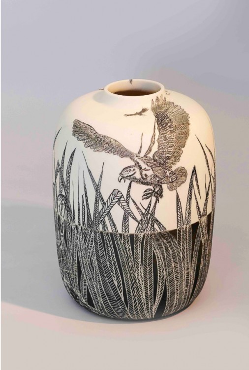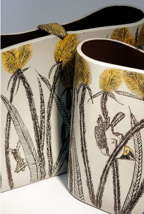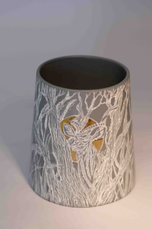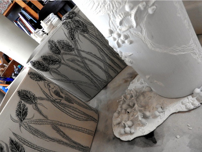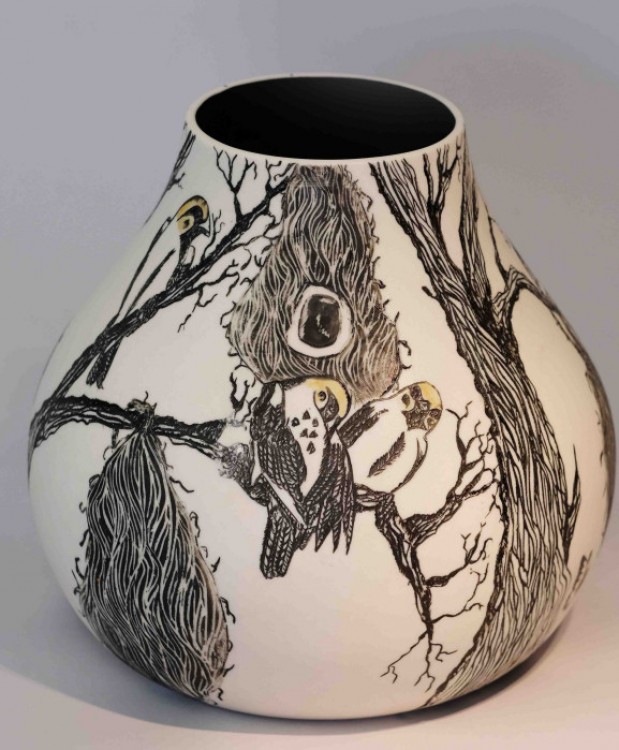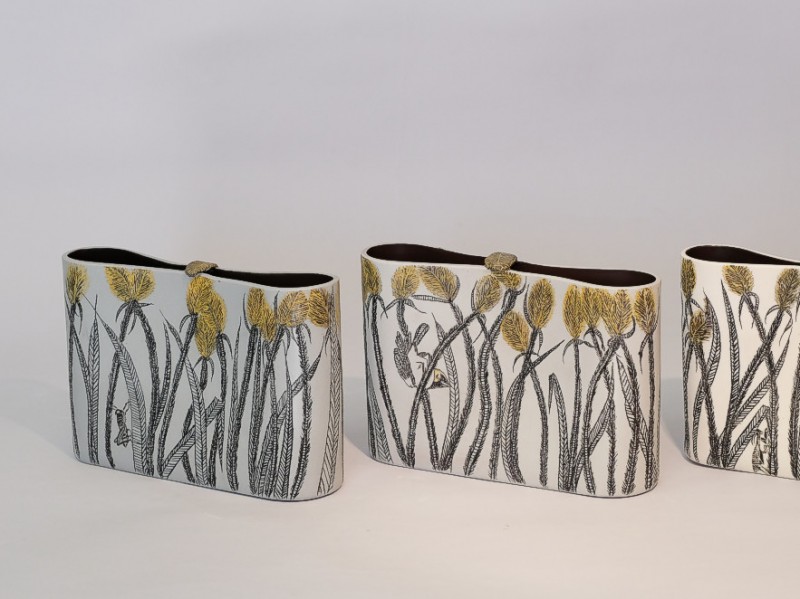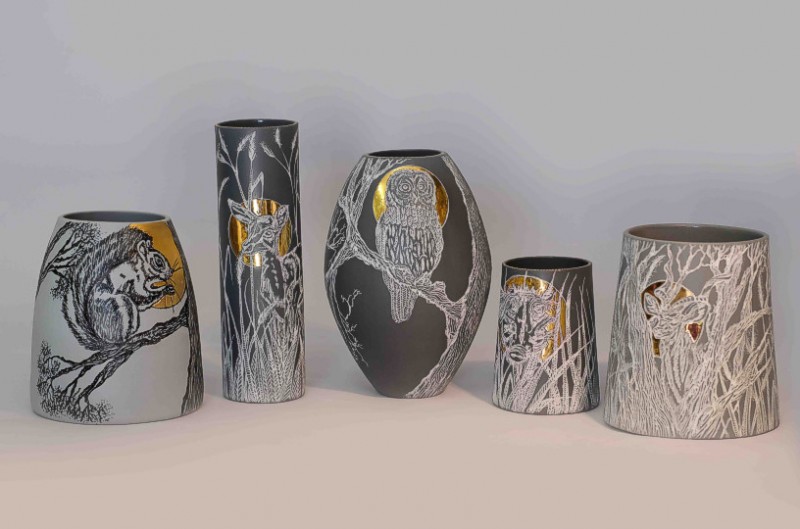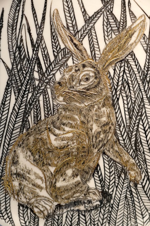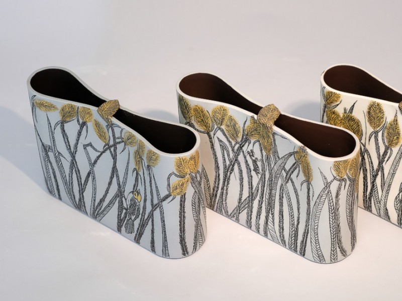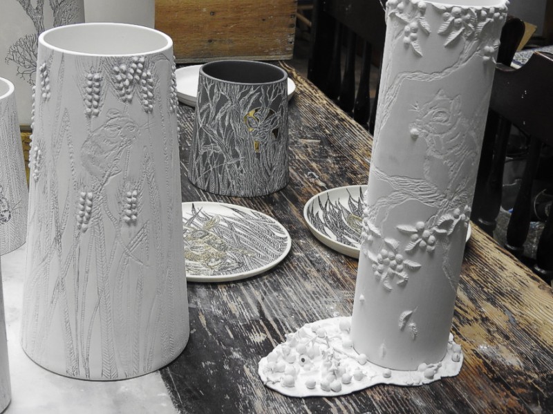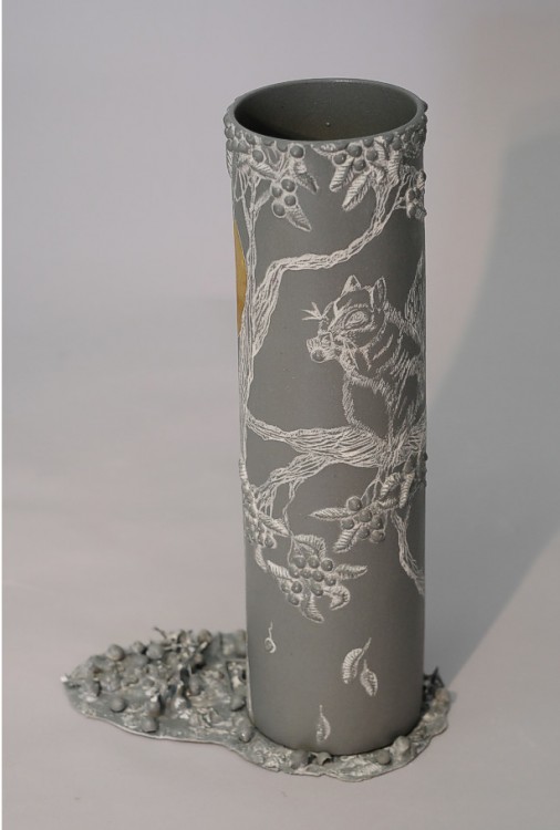 I like to illustrate through "clay etchings" on the form, a world in which small acts of everyday life reveals itself in fine detail.