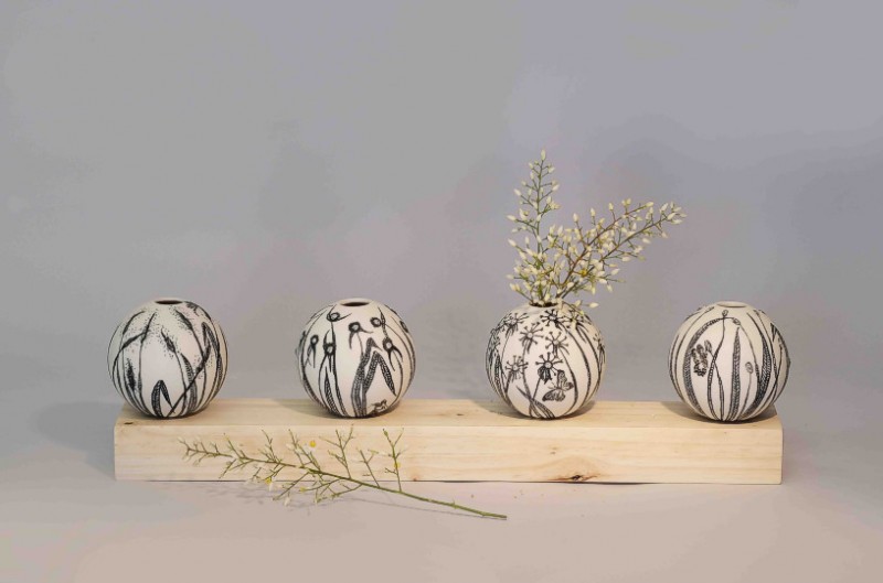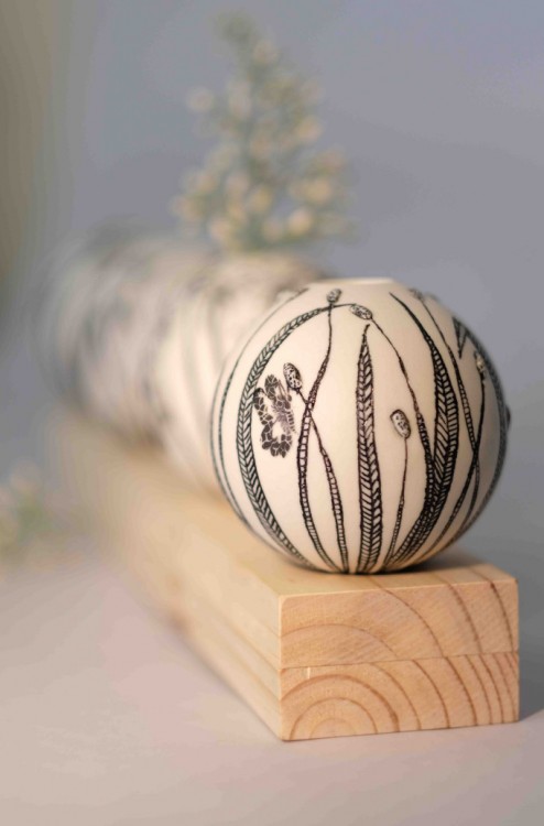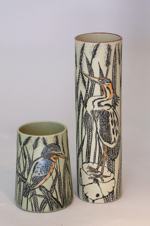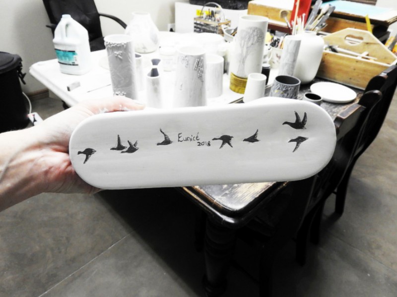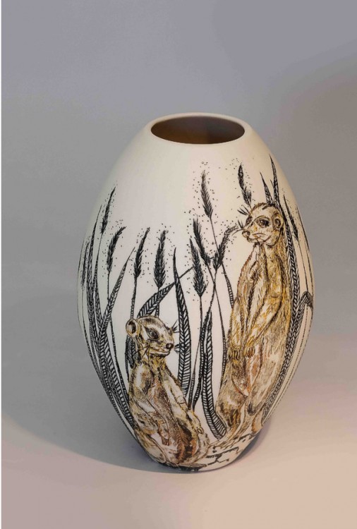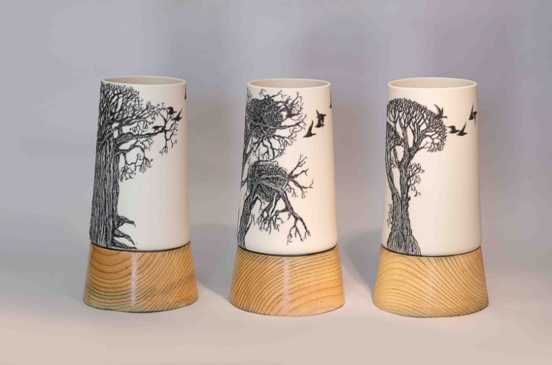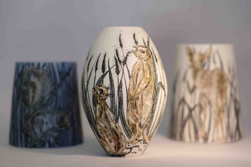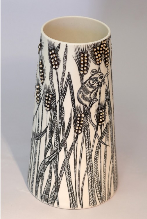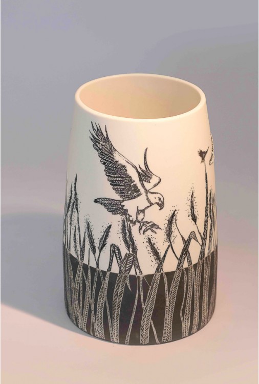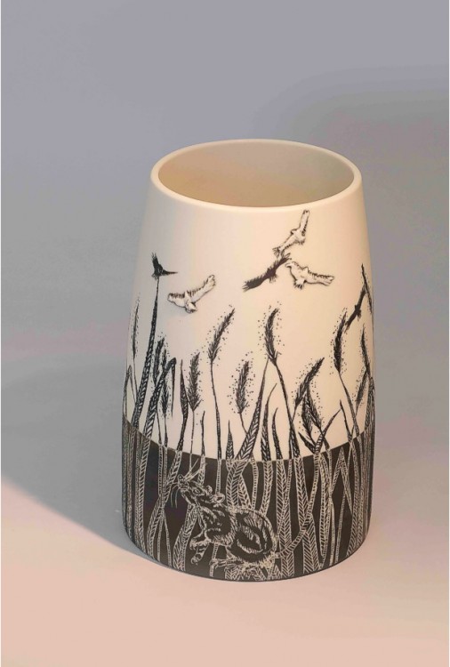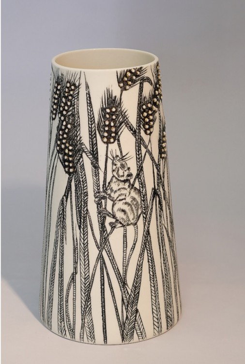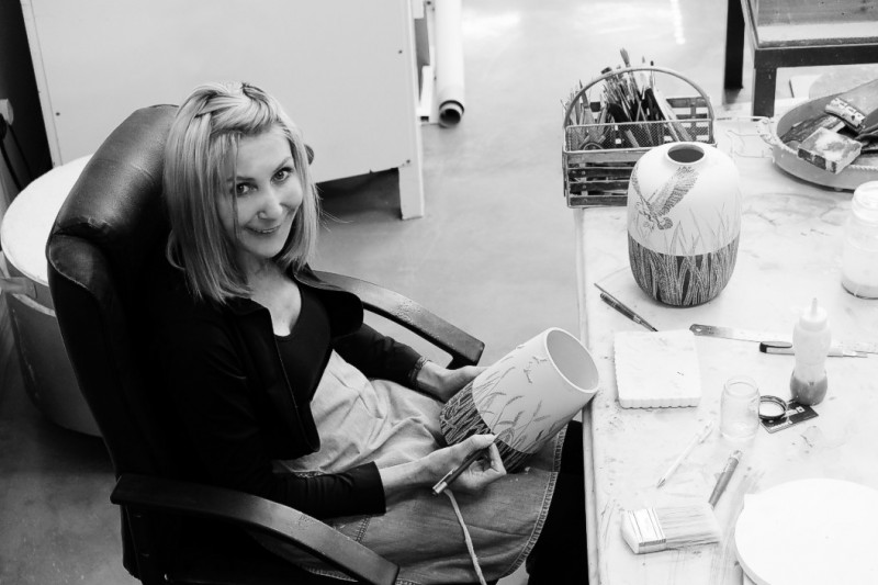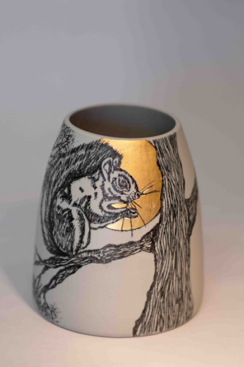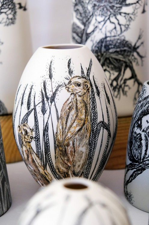 I like to illustrate through "clay etchings" on the form, a world in which small acts of everyday life reveals itself in fine detail.