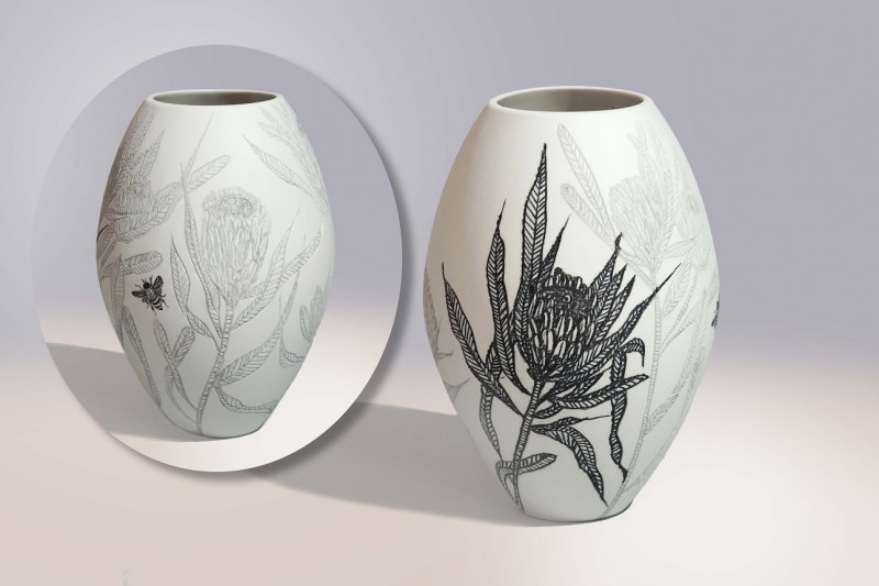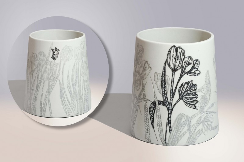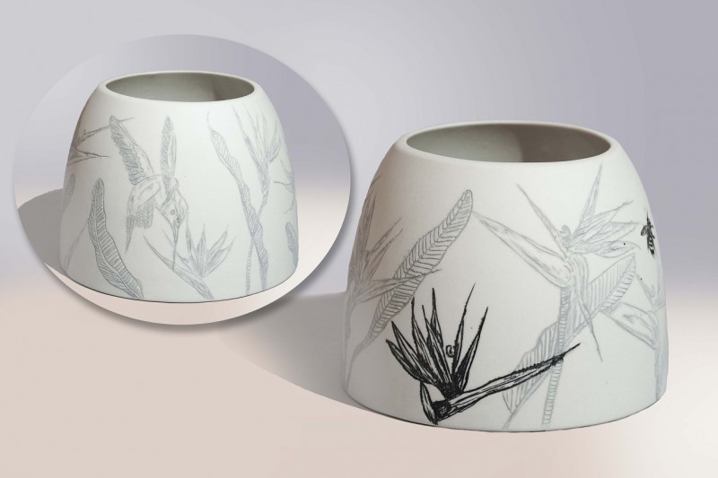 I like to illustrate through "clay etchings" on the form, a world in which small acts of everyday life reveals itself in fine detail.