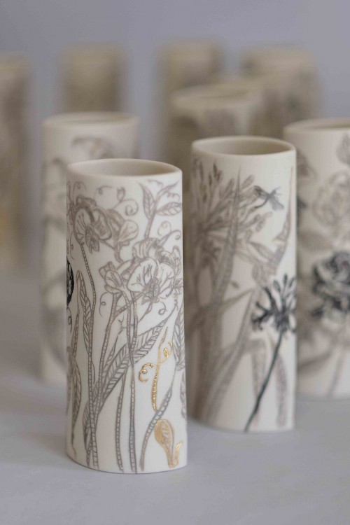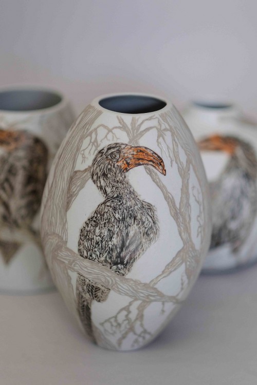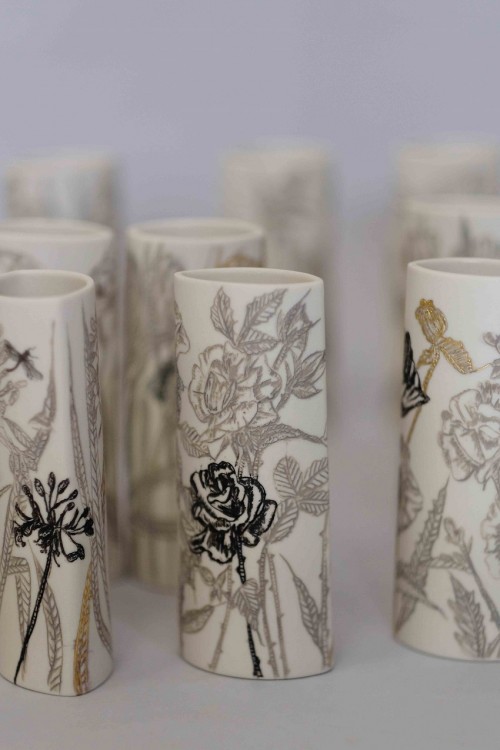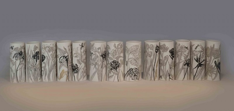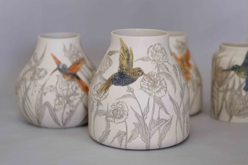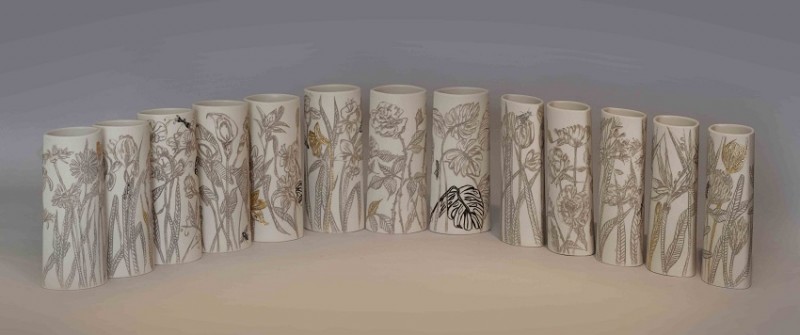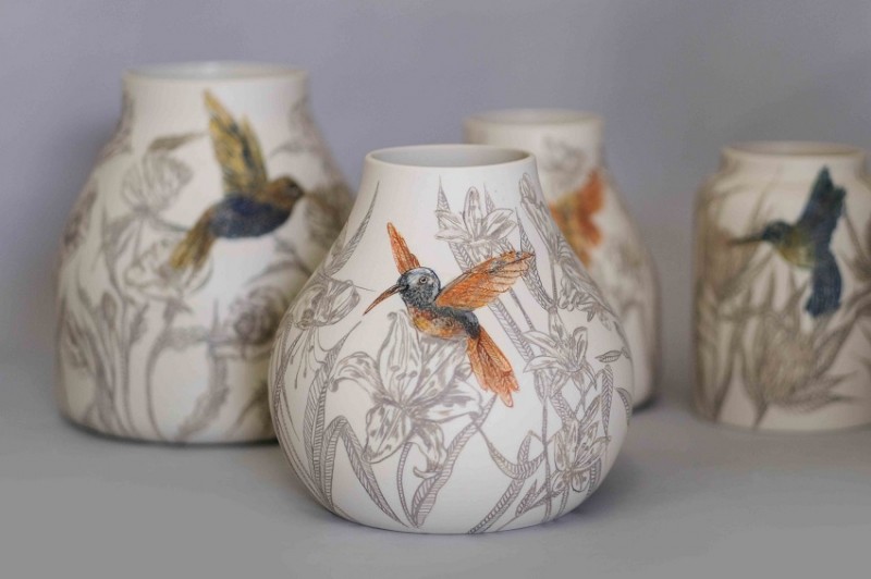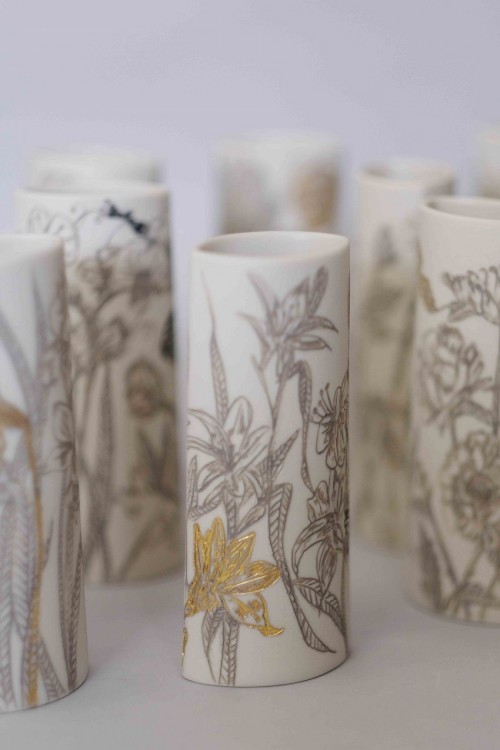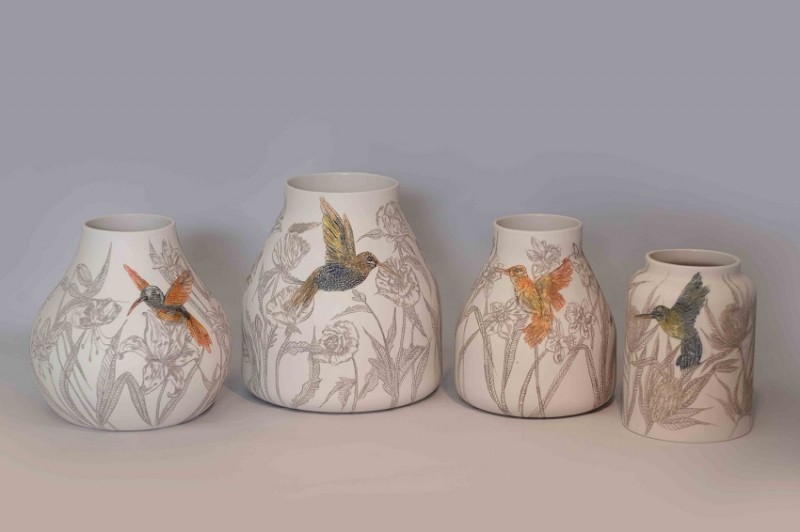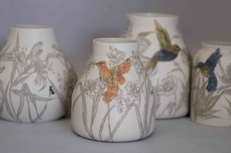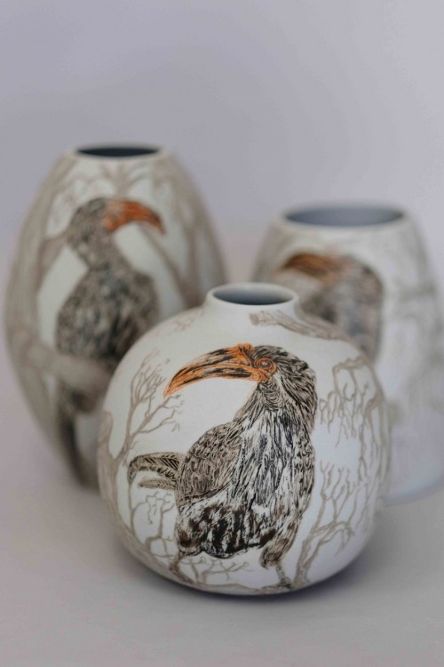 I like to illustrate through "clay etchings" on the form, a world in which small acts of everyday life reveals itself in fine detail.