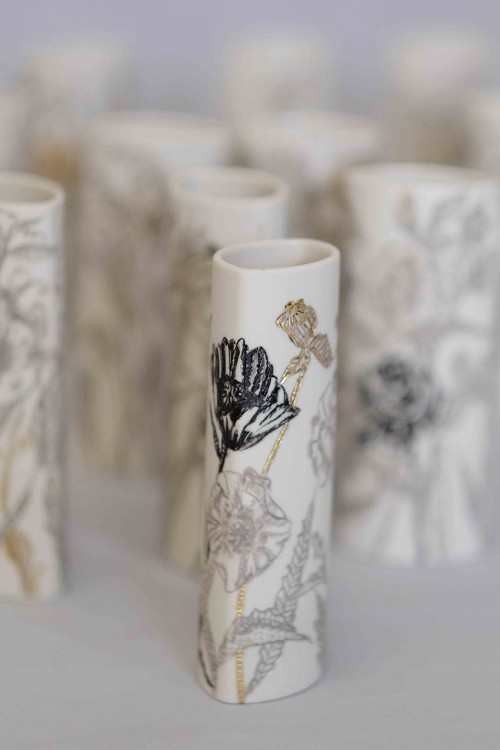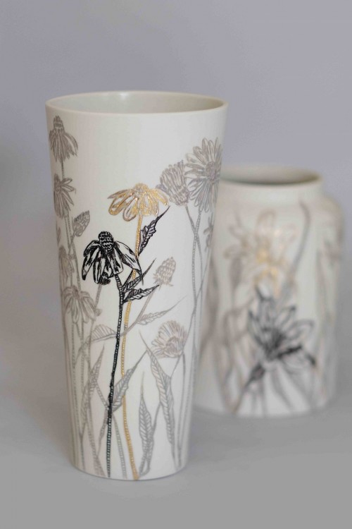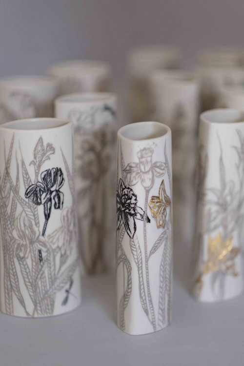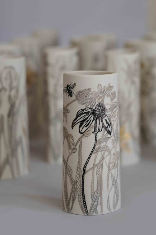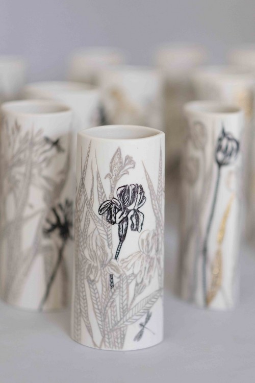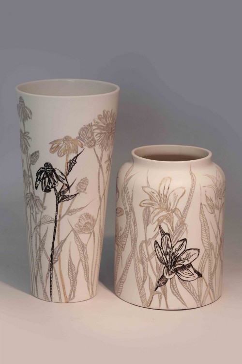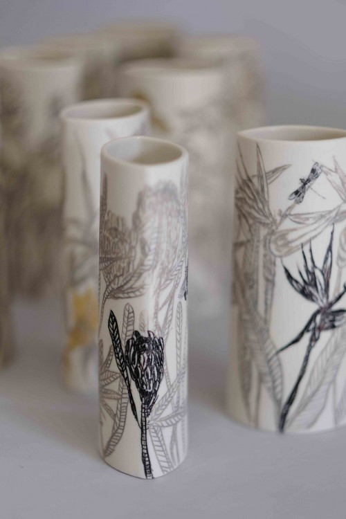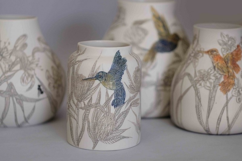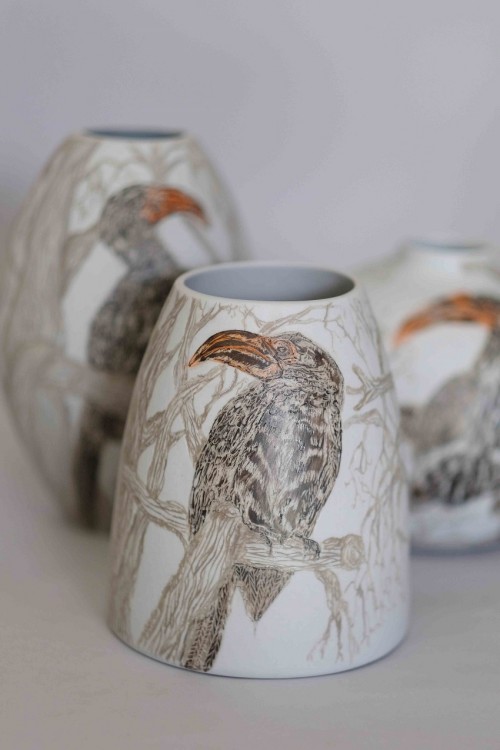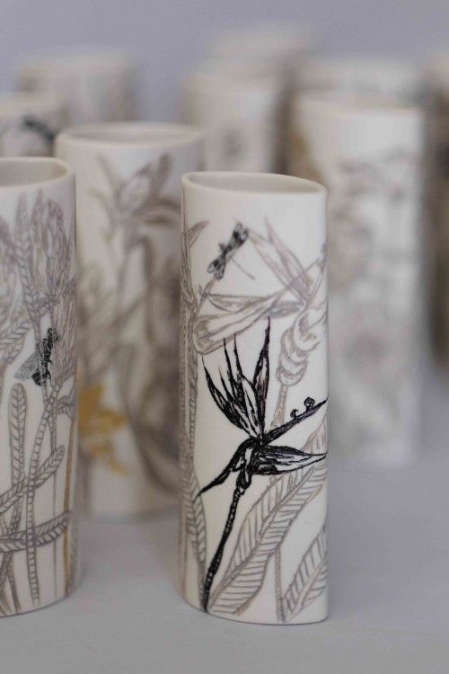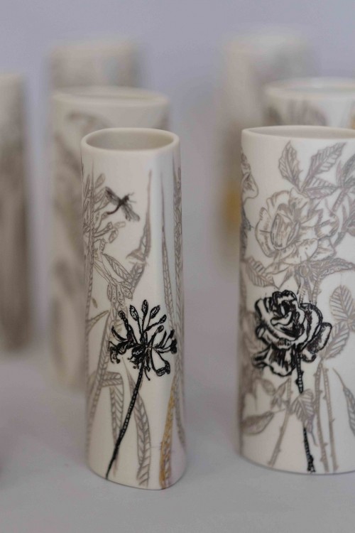 I like to illustrate through "clay etchings" on the form, a world in which small acts of everyday life reveals itself in fine detail.