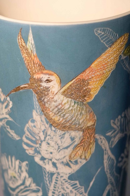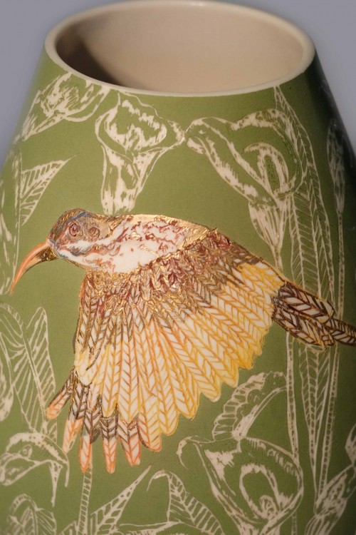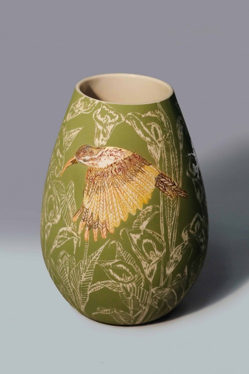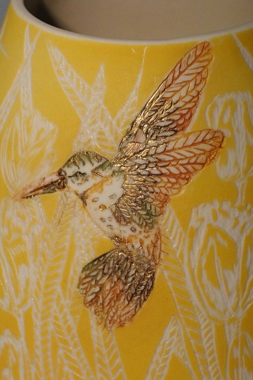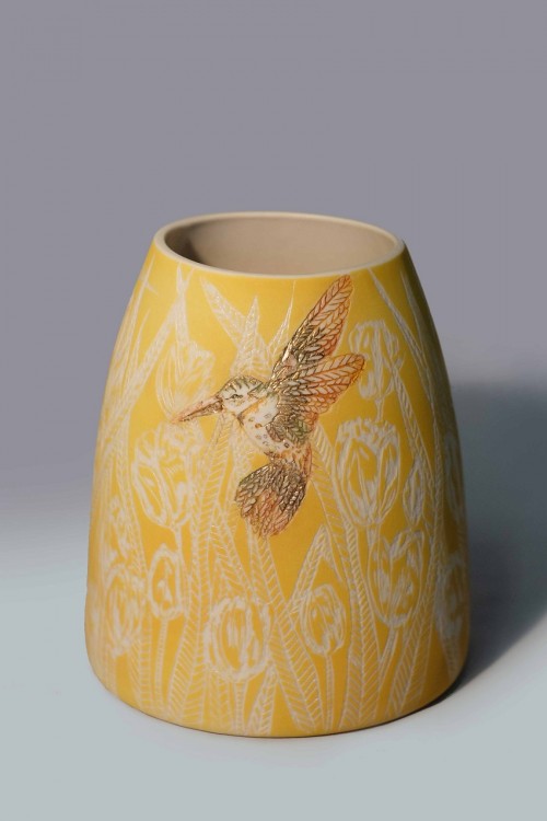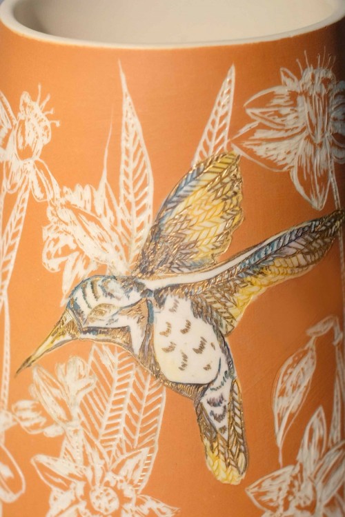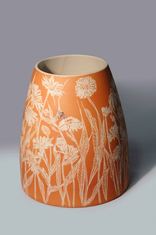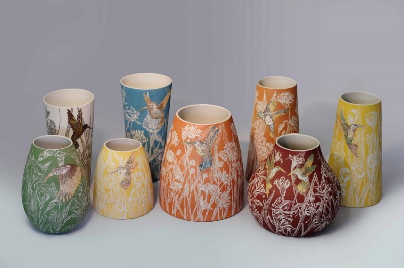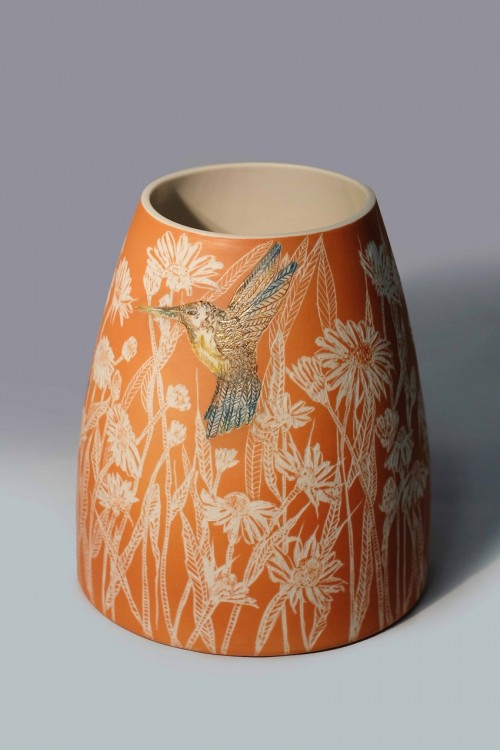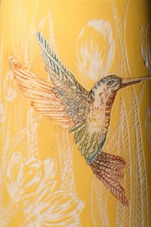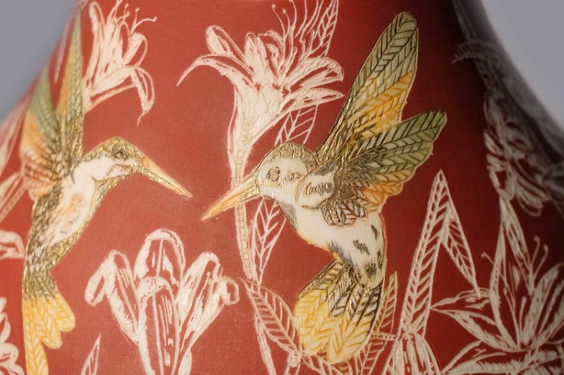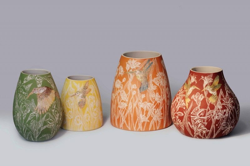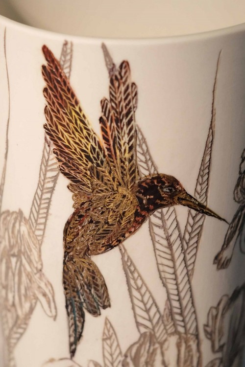 I like to illustrate through "clay etchings" on the form, a world in which small acts of everyday life reveals itself in fine detail.