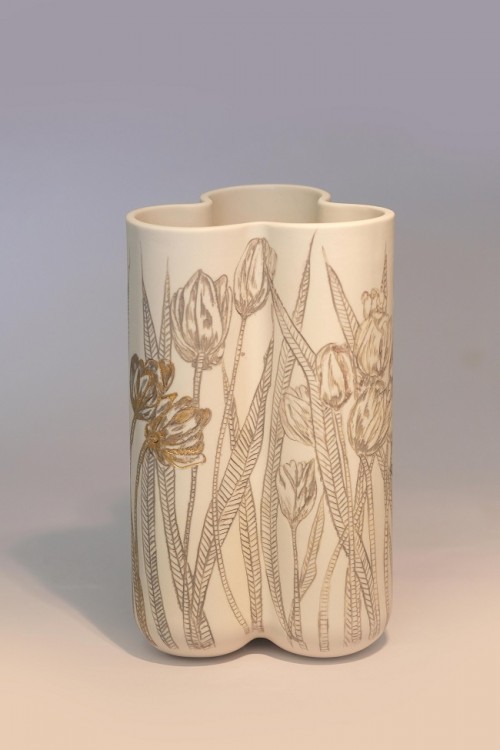 I like to illustrate through "clay etchings" on the form, a world in which small acts of everyday life reveals itself in fine detail.