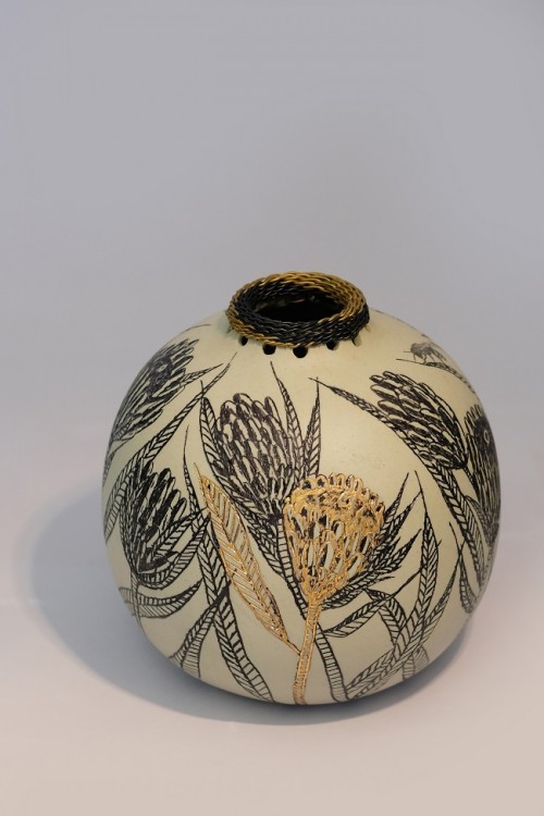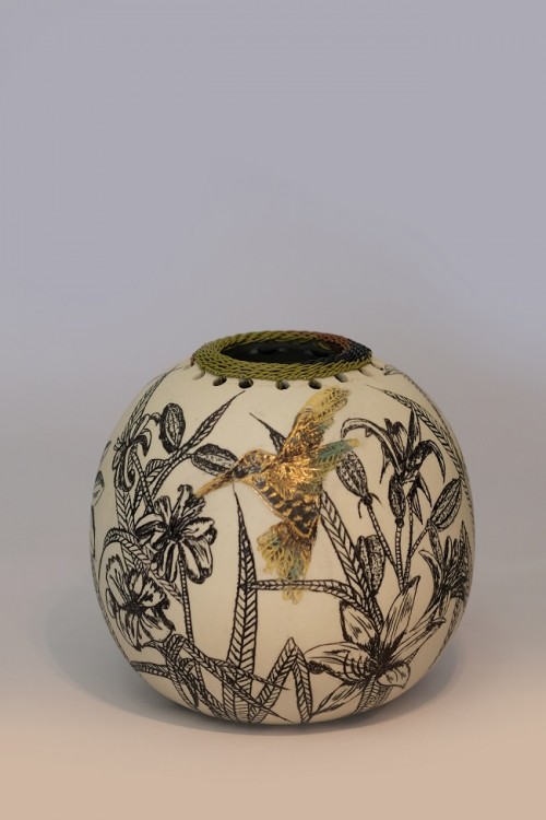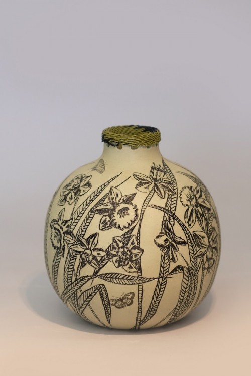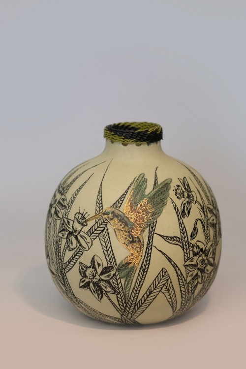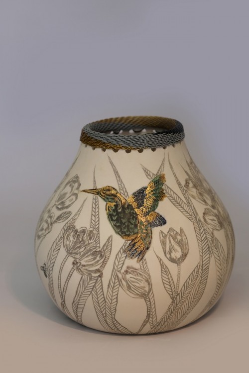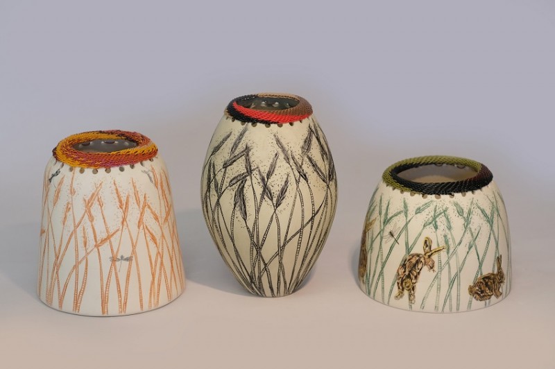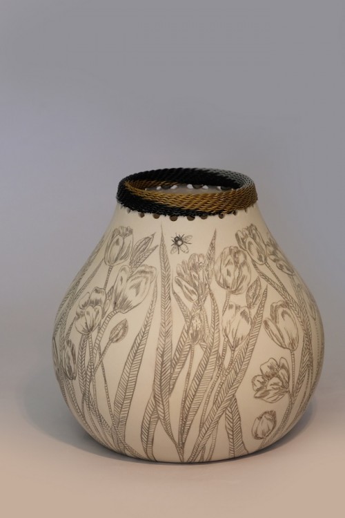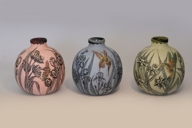 I like to illustrate through "clay etchings" on the form, a world in which small acts of everyday life reveals itself in fine detail.