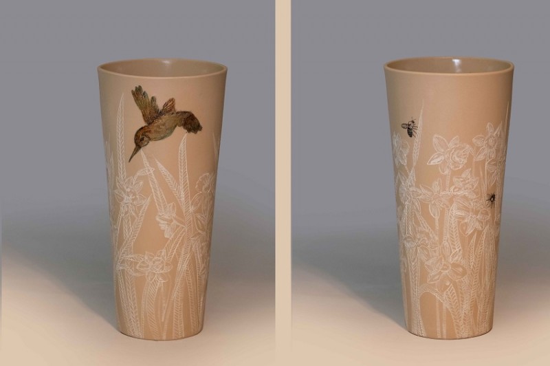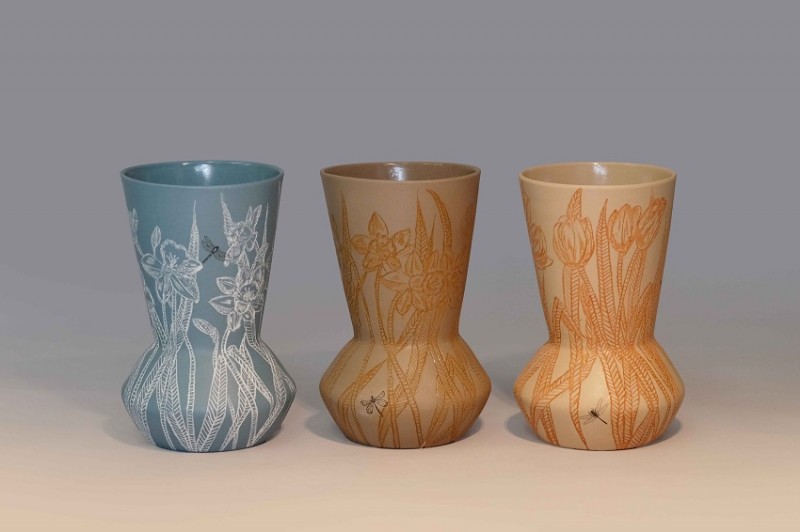 I like to illustrate through "clay etchings" on the form, a world in which small acts of everyday life reveals itself in fine detail.