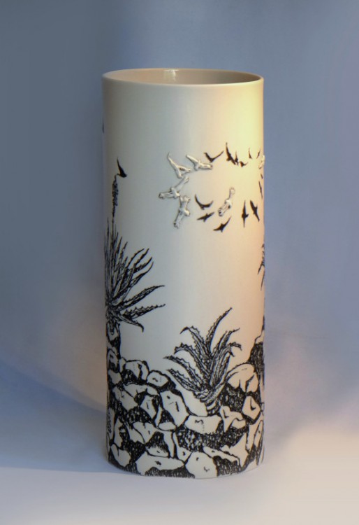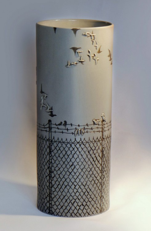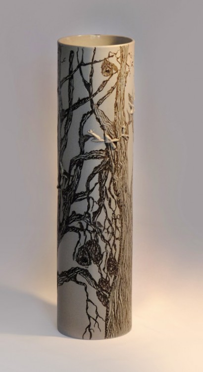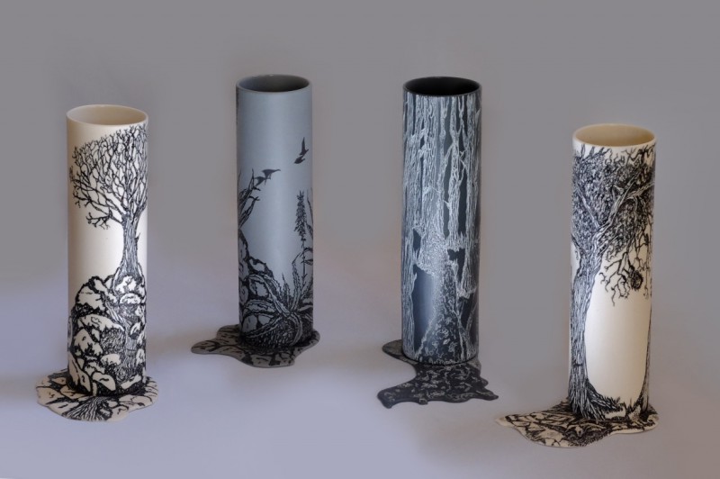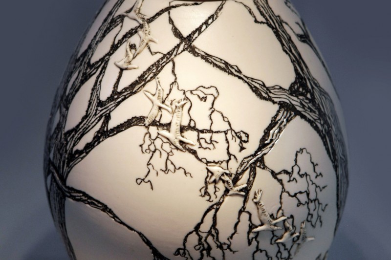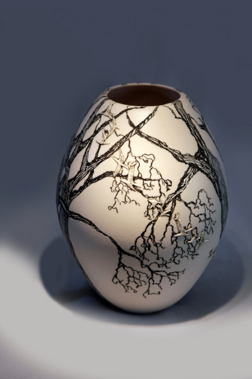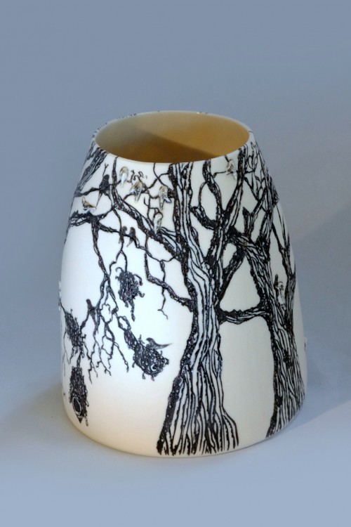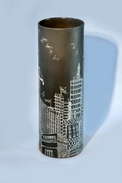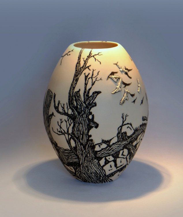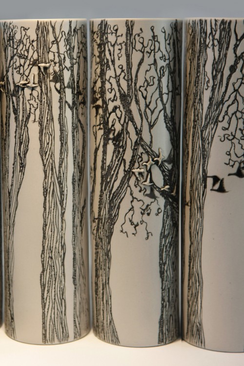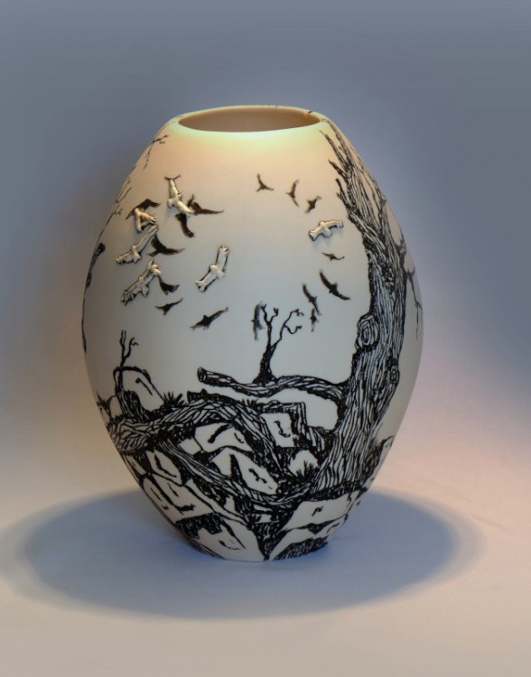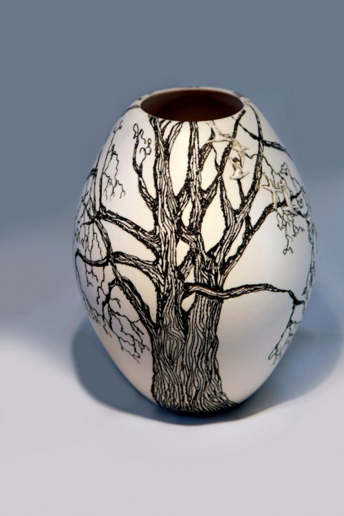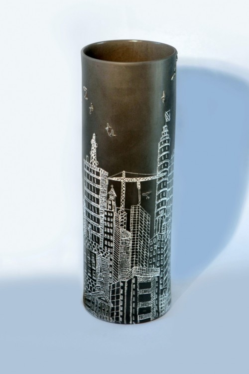 I like to illustrate through "clay etchings" on the form, a world in which small acts of everyday life reveals itself in fine detail.
