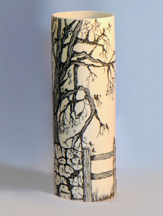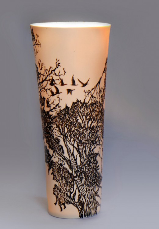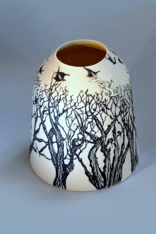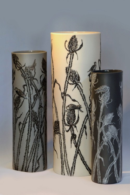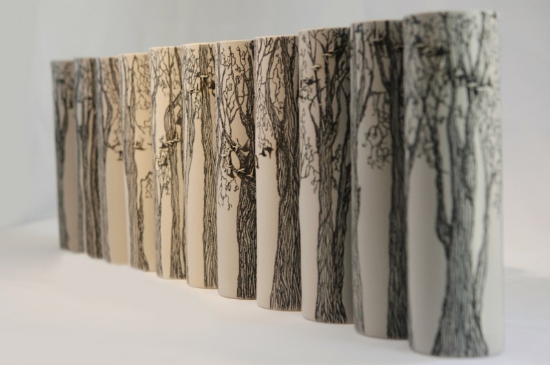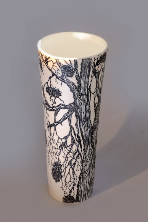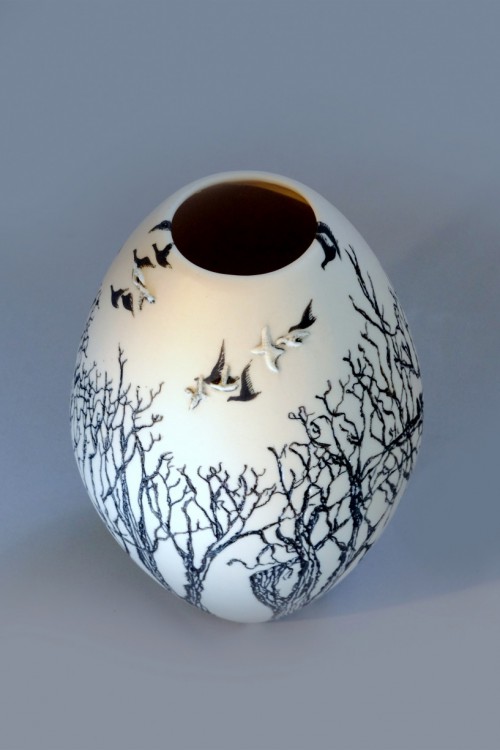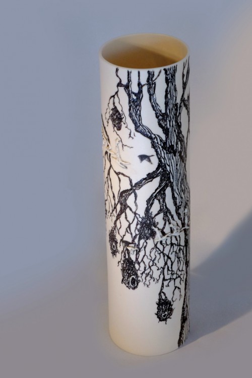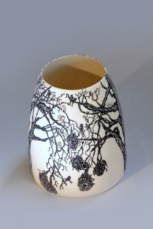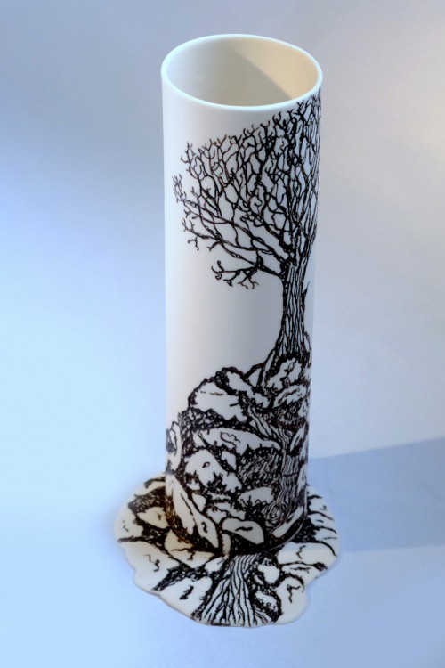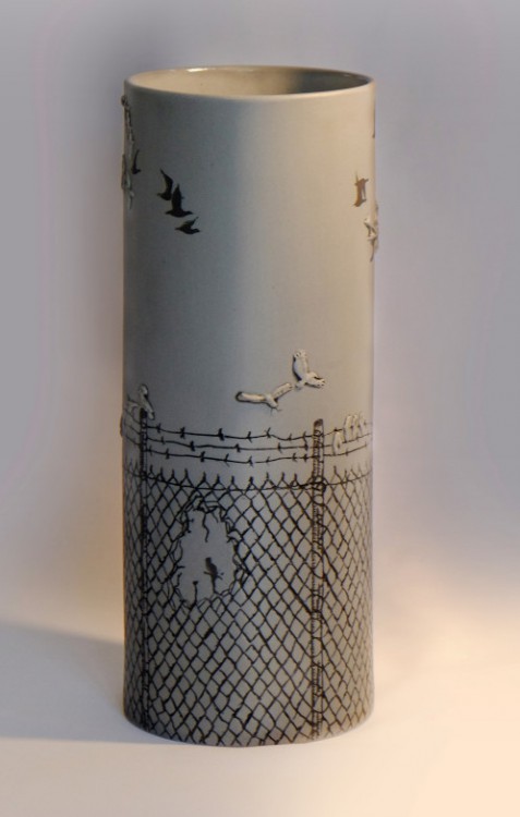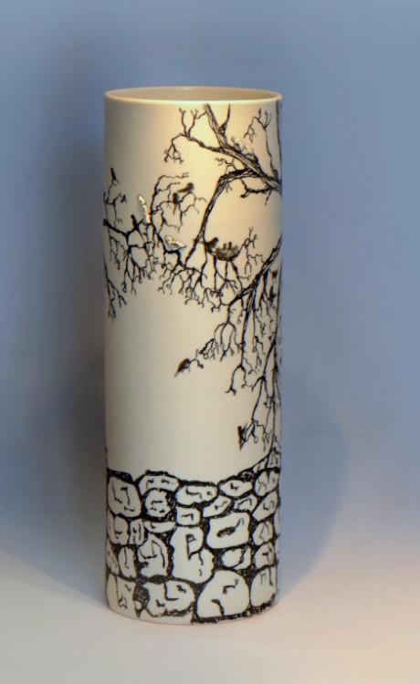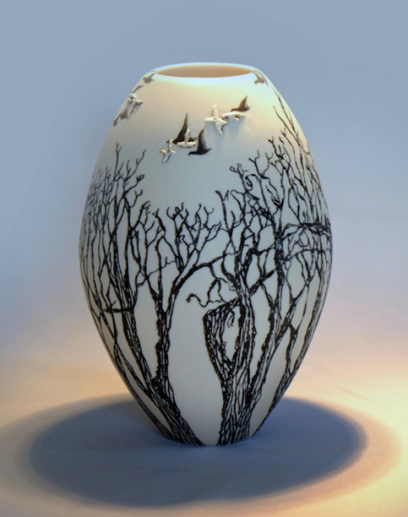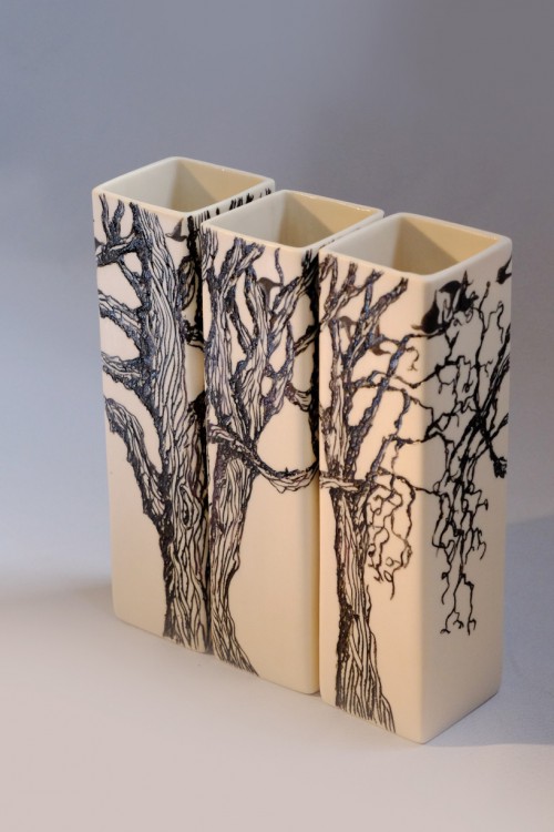 I like to illustrate through "clay etchings" on the form, a world in which small acts of everyday life reveals itself in fine detail.
