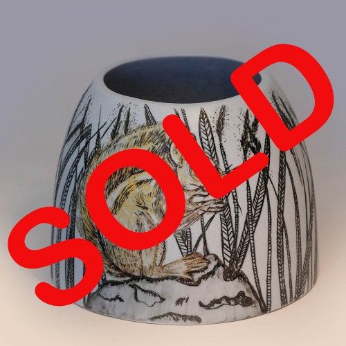 21cm high. White porcelain with black etching, reverse etching and painted colour with gold lu..