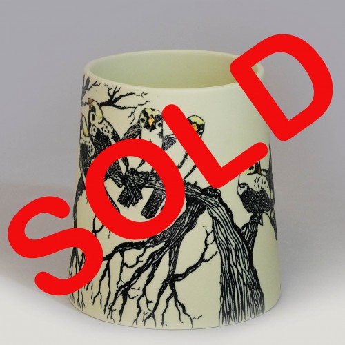 21cm high. Grey porcelain pot with black etching and lustre in third firing...
