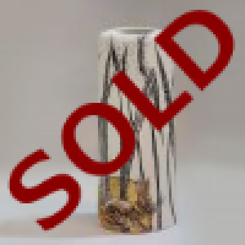 15cm high. White porcelain with black etching, reverse etching and gold lustre in third firing